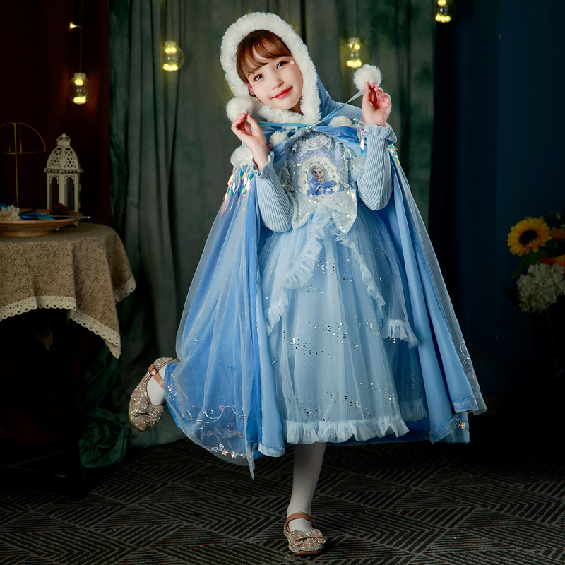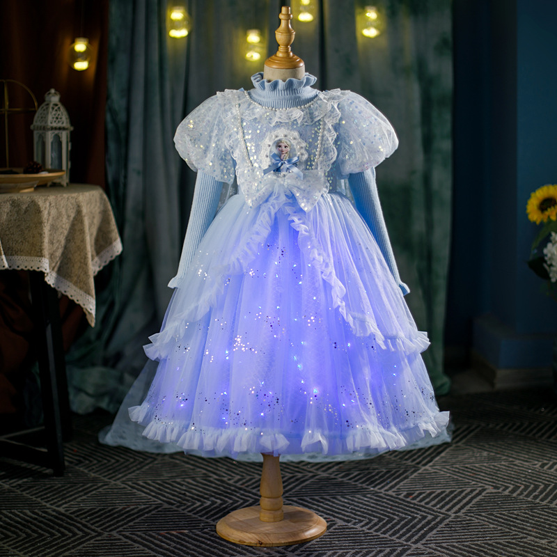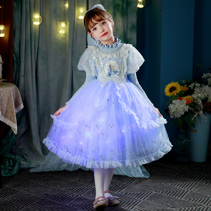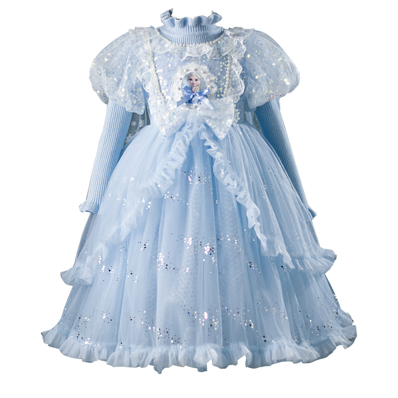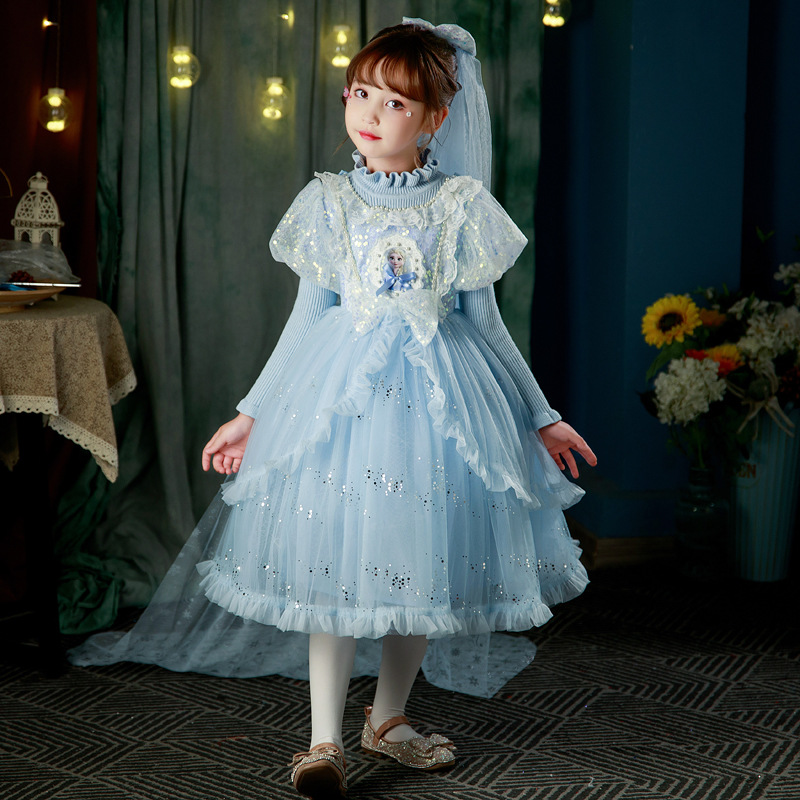 어린이 빛나는 스웨터 스커트 2025 새로운 로리타 공주 스커트 소녀 봄, 가을 엘사 메쉬 드레스스토어 가기