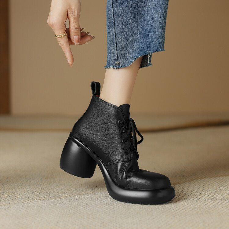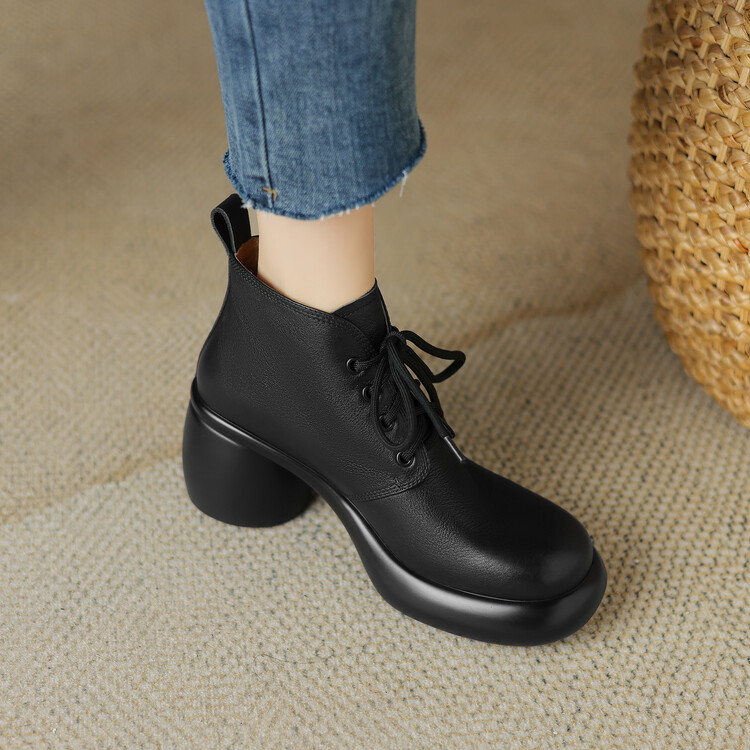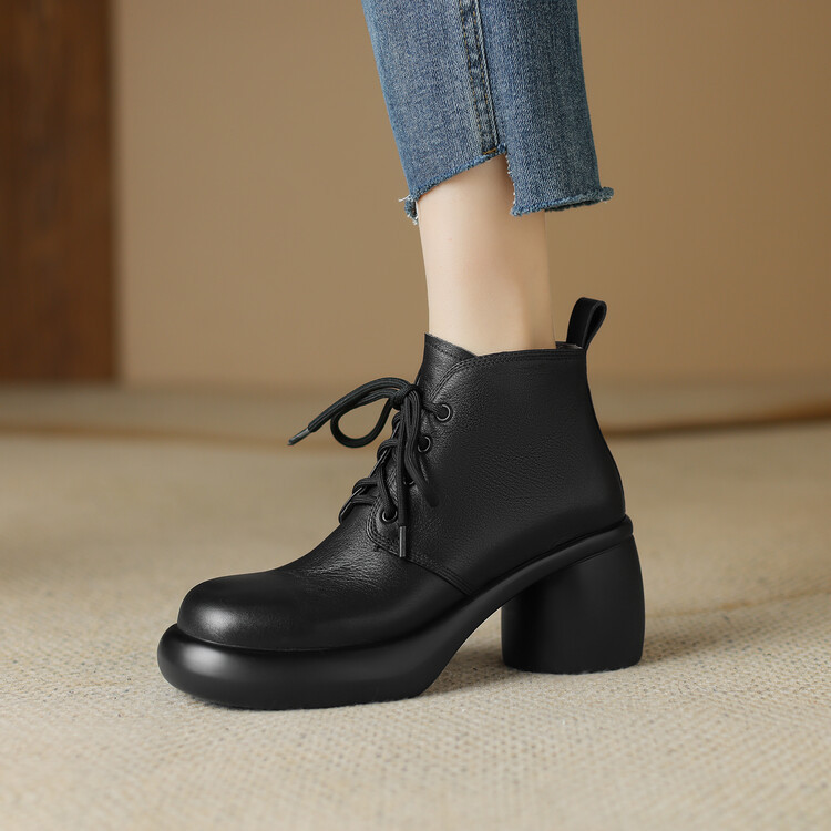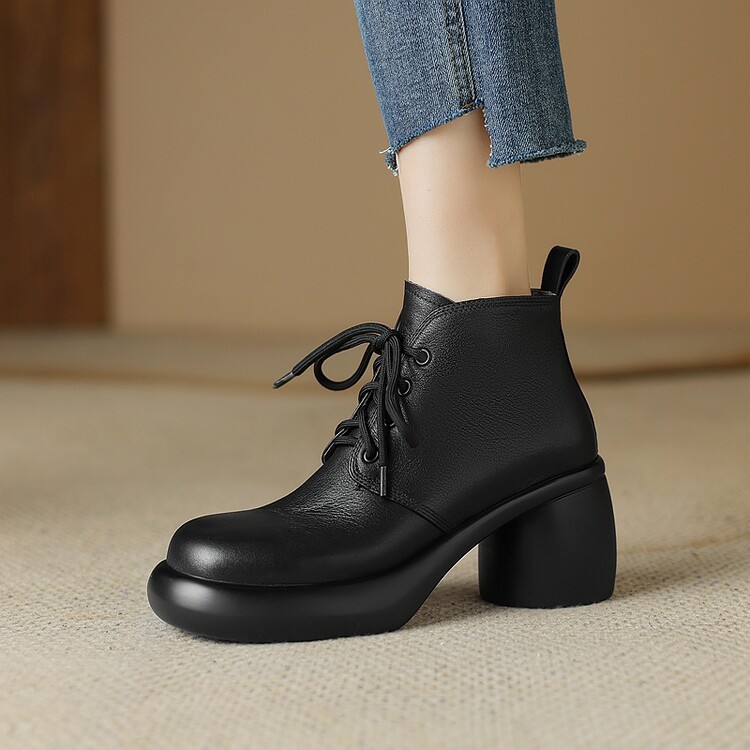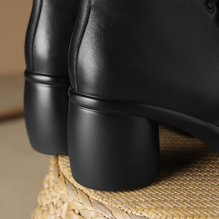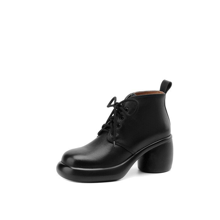 하이힐 마틴 부츠 여성의 2023 가을과 겨울 새로운 잘 생긴 영국 스타일 소가죽 수제 빈티지 다크 브라운 부츠 두꺼운 굽 여성 신발