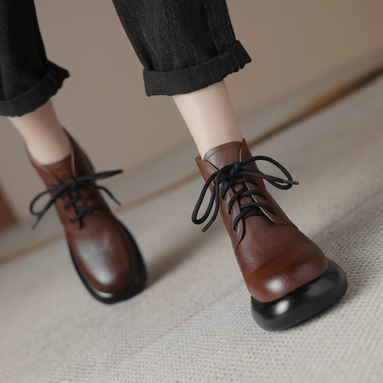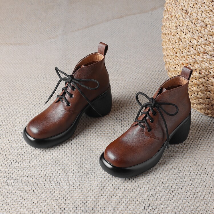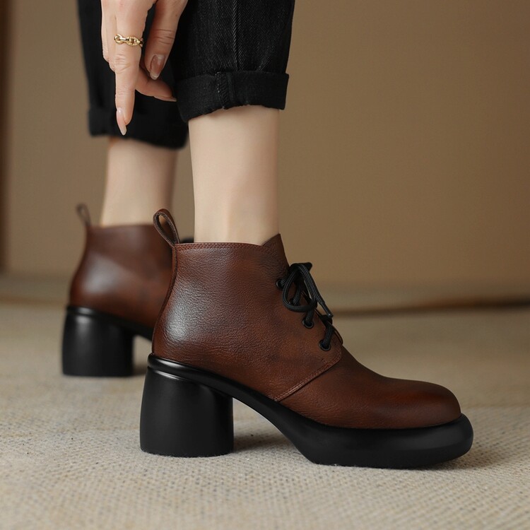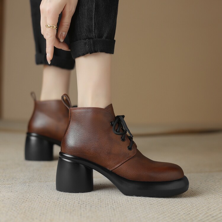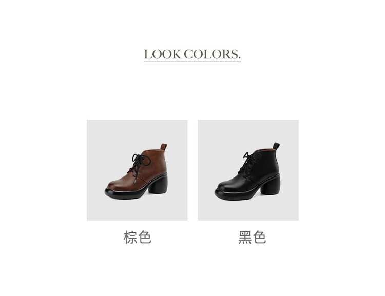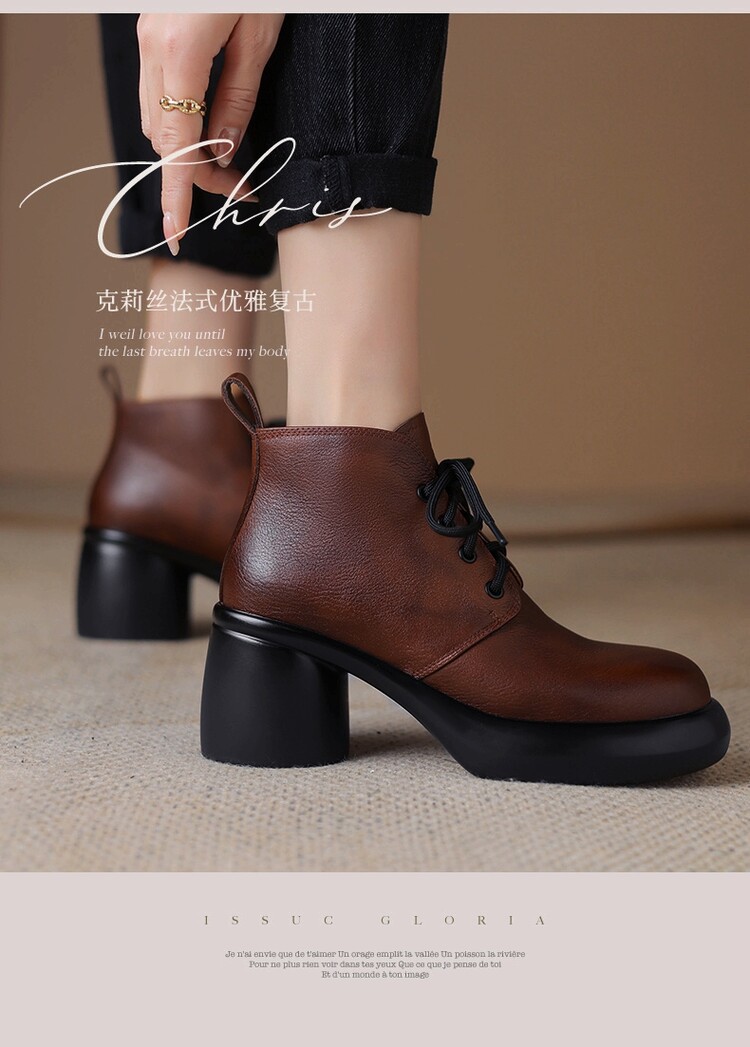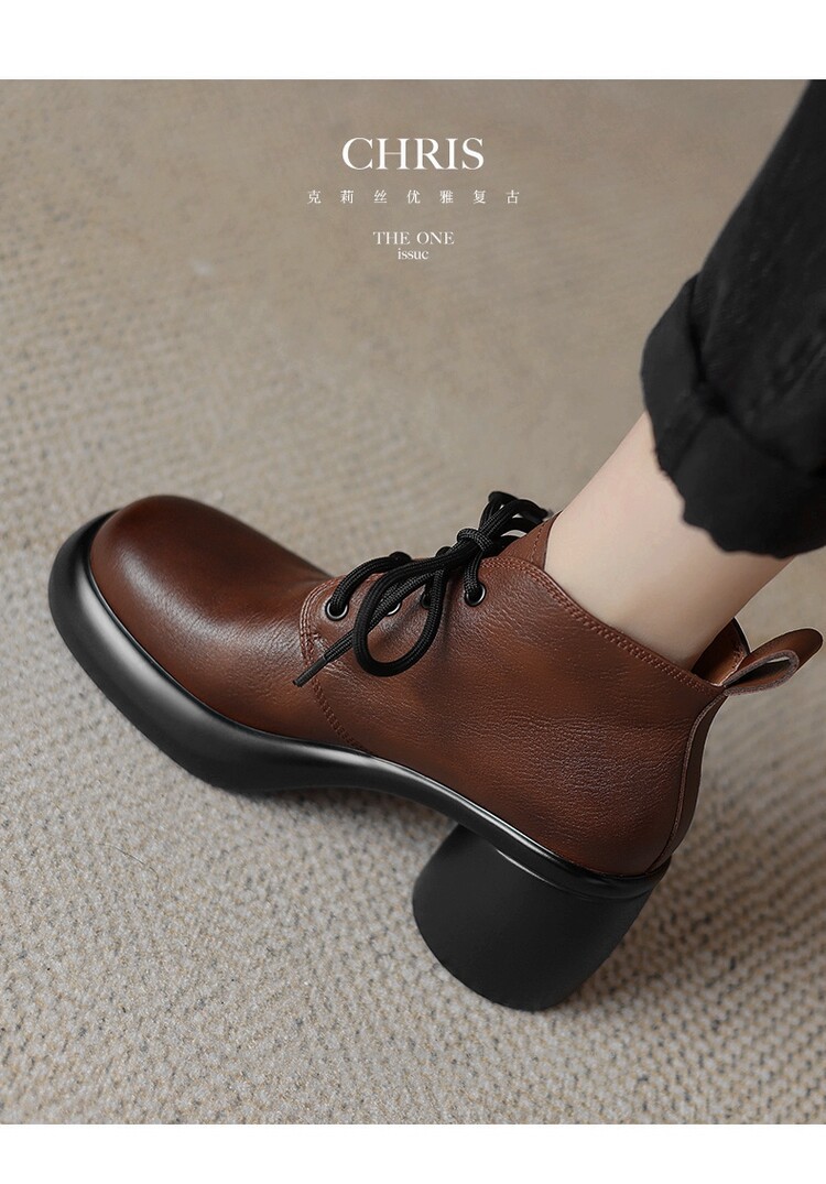 하이힐 마틴 부츠 여성의 2023 가을과 겨울 새로운 잘 생긴 영국 스타일 소가죽 수제 빈티지 다크 브라운 부츠 두꺼운 굽 여성 신발스토어 가기