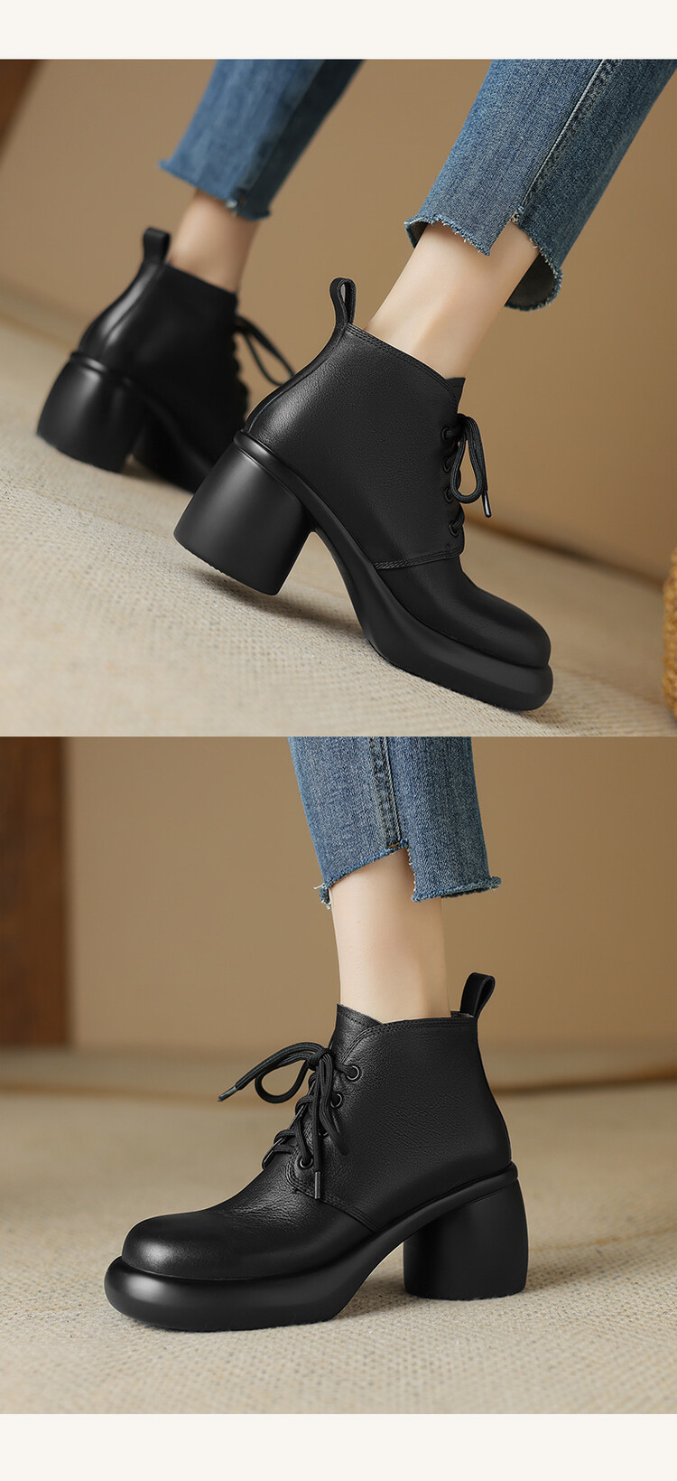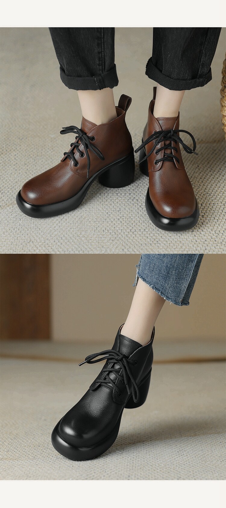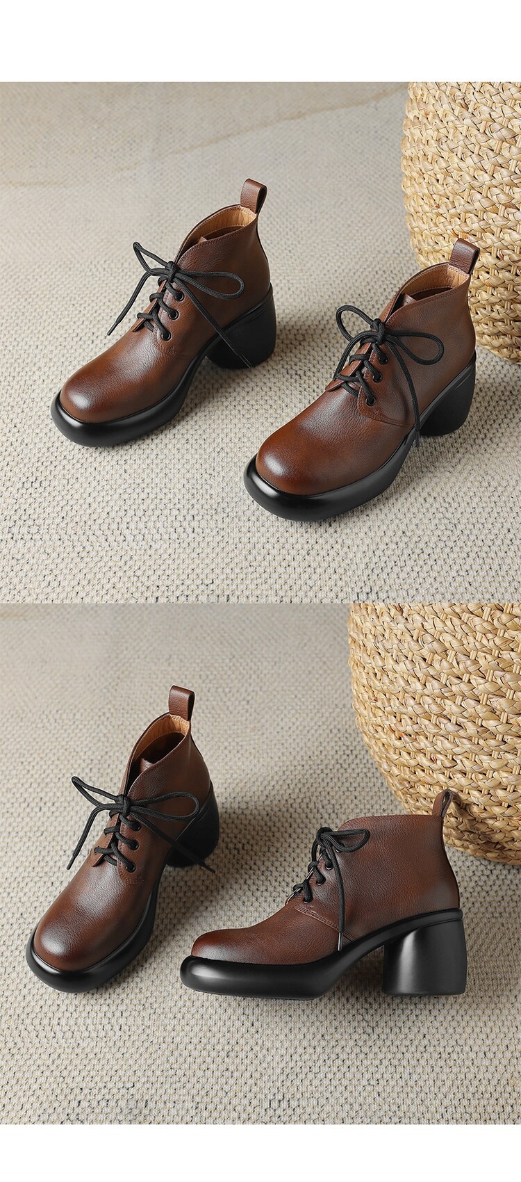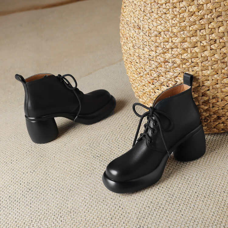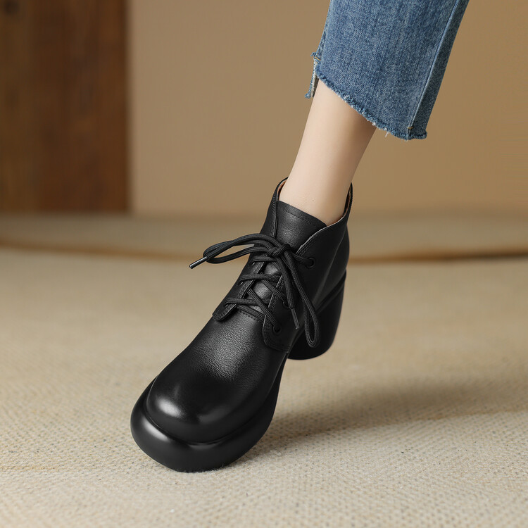 하이힐 마틴 부츠 여성의 2023 가을과 겨울 새로운 잘 생긴 영국 스타일 소가죽 수제 빈티지 다크 브라운 부츠 두꺼운 굽 여성 신발스토어 가기