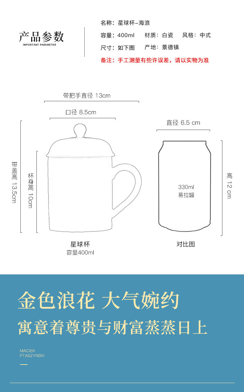 Jingdezhen 크리에이티브 세라믹 골드 웨이브 플래닛 컵 회의실 티컵 오피스 컵 뚜껑 개인 워터 컵