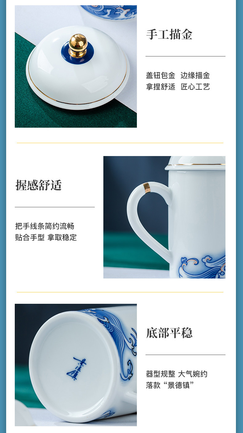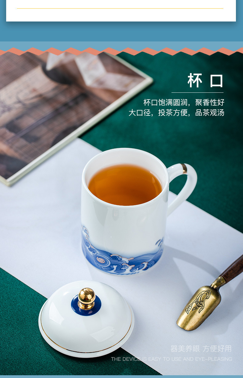 Jingdezhen 크리에이티브 세라믹 골드 웨이브 플래닛 컵 회의실 티컵 오피스 컵 뚜껑 개인 워터 컵스토어 가기
