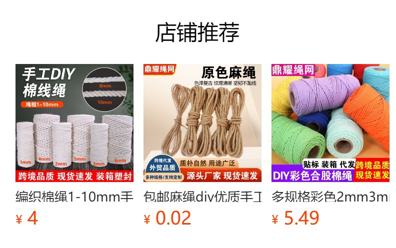 아마존의 인기 미색 DIY 수제 장식 면사 태피스트리 땋은 바인딩 태그 로프 두껍고 얇은 면 로프스토어 가기