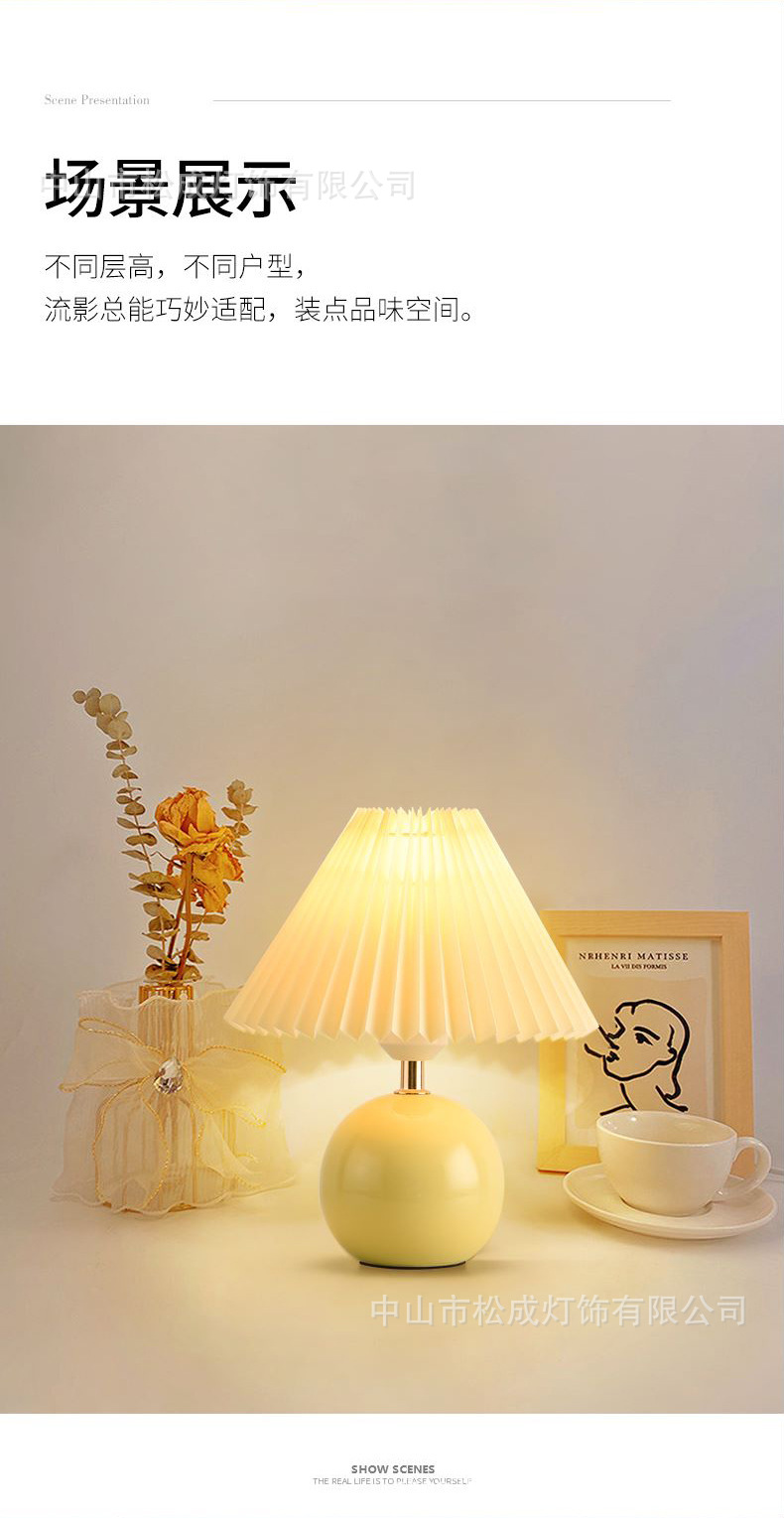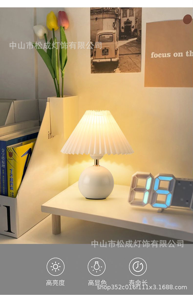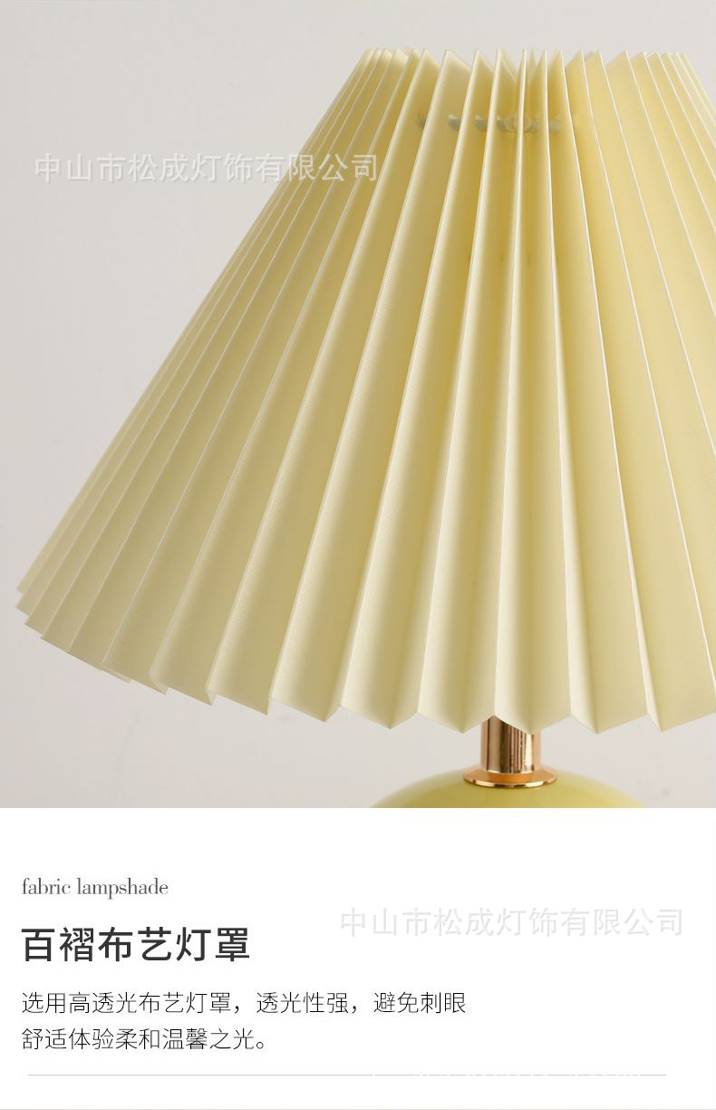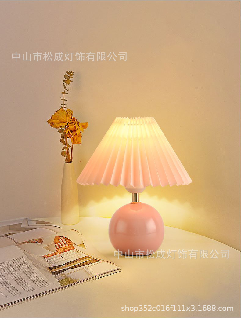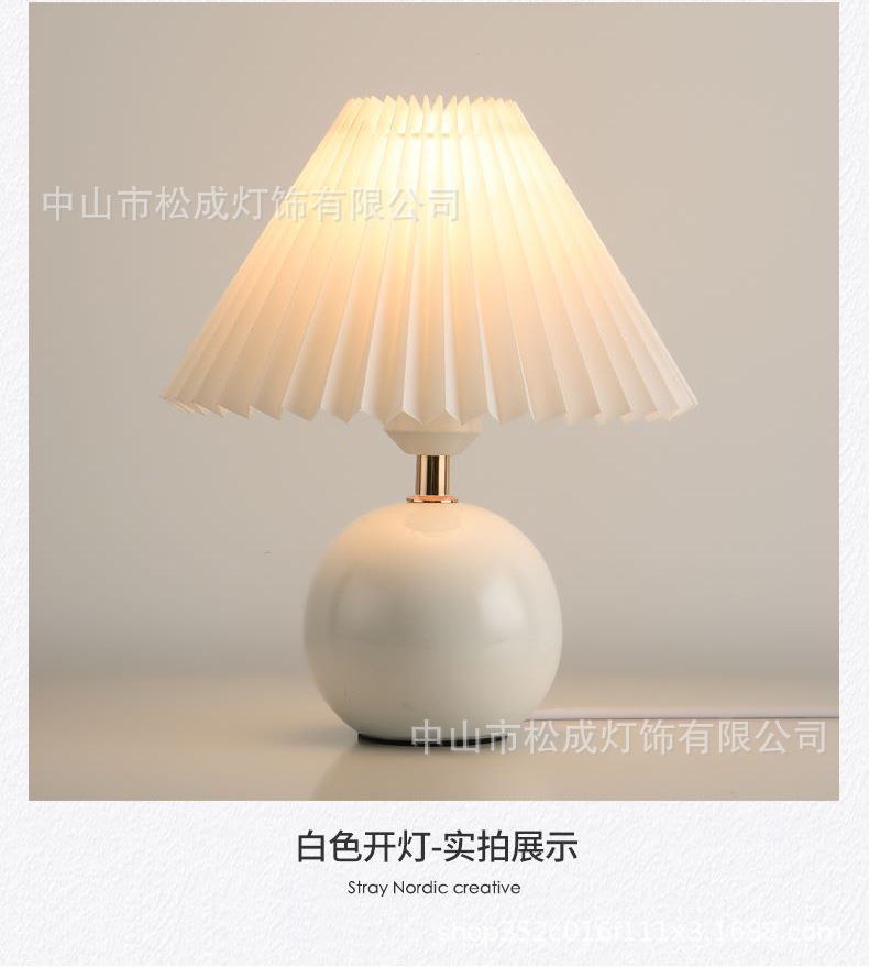 창조적 인 테이블 램프 주름 소녀 침실 나이트 라이트 북유럽 인터넷 연예인 분위기 세라믹 장식 침대 옆 테이블 램프