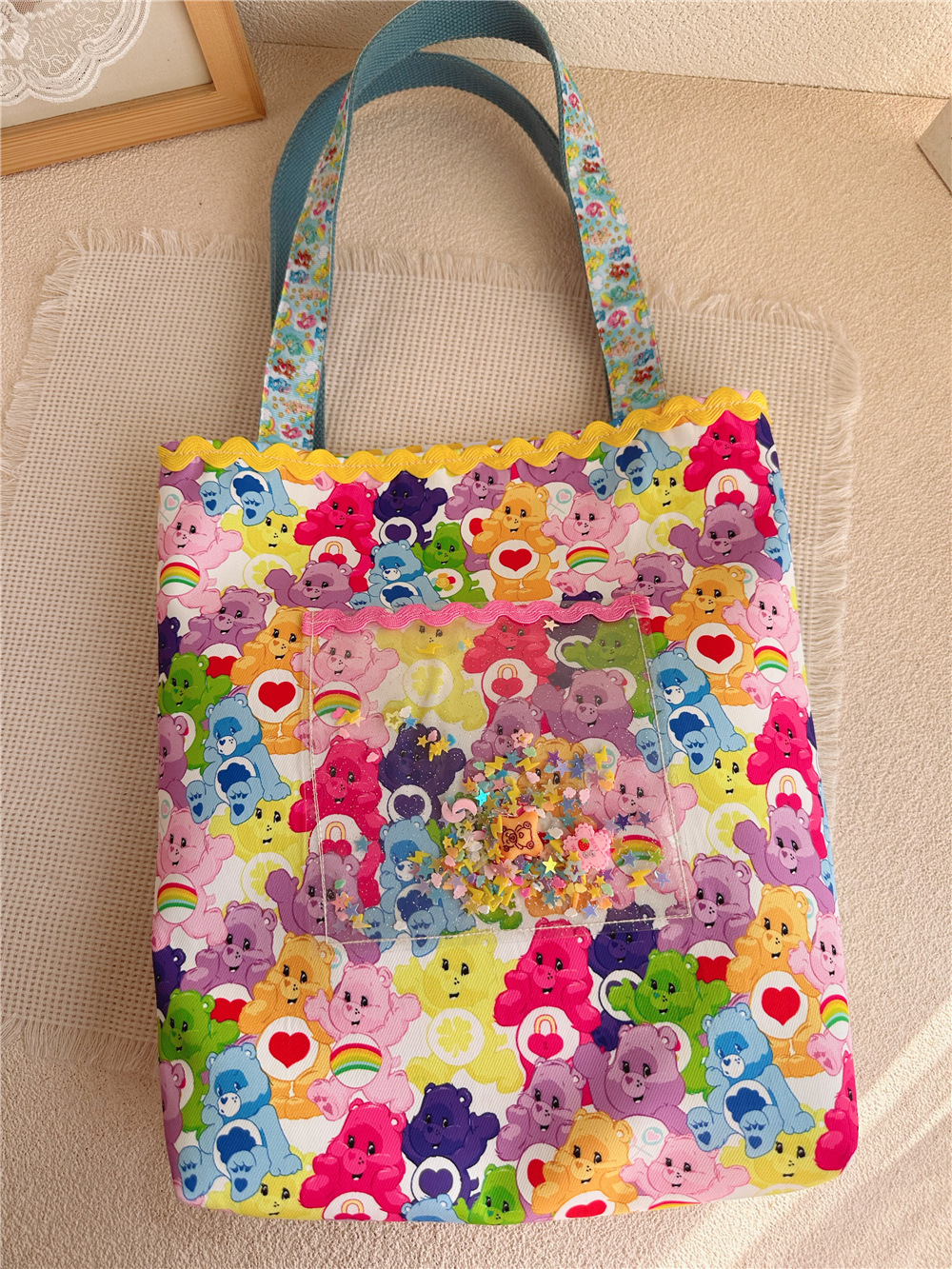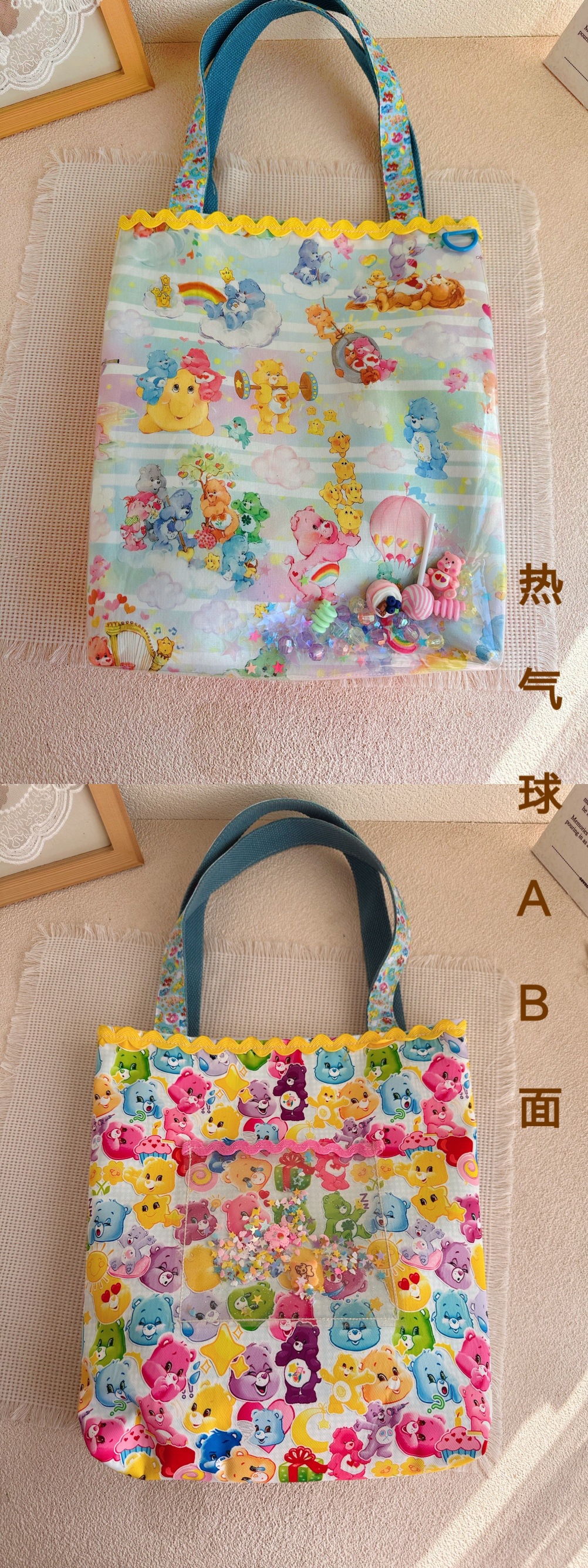 무지개 우산 열기구 귀여운 곰 투명 퀵샌드 핸드백 만화 인쇄 수제 퀵샌드 여성 숄더 백스토어 가기