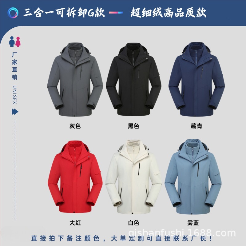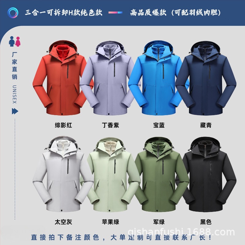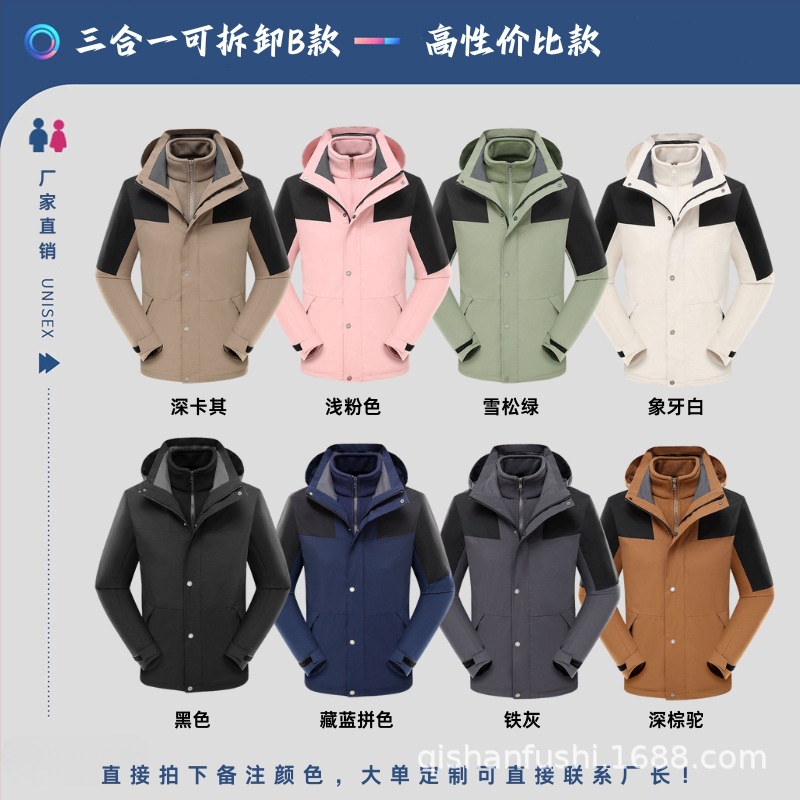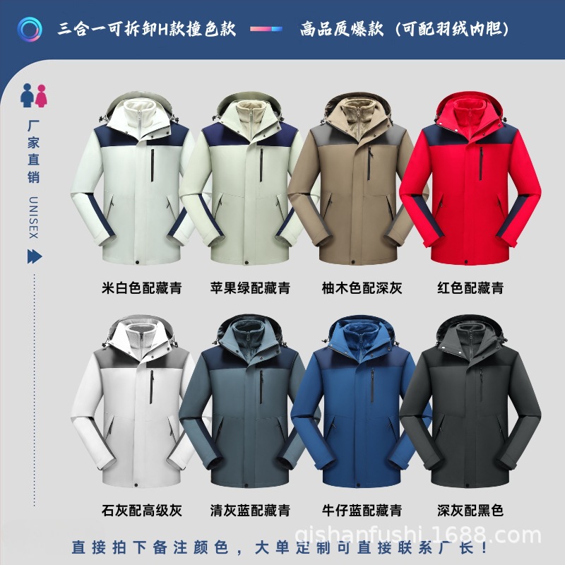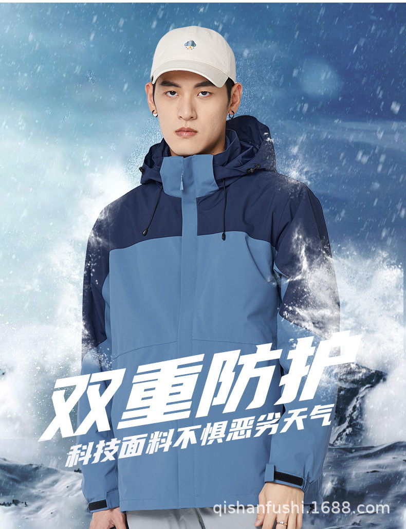 방풍 및 방수 충전 의류 맞춤형 작업복 Three-in-One 분리형 남성용 인쇄 및 자수 로고 겨울 기모 두껍게스토어 가기