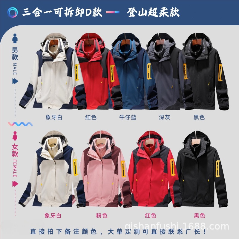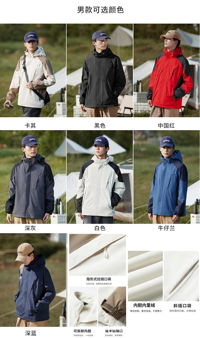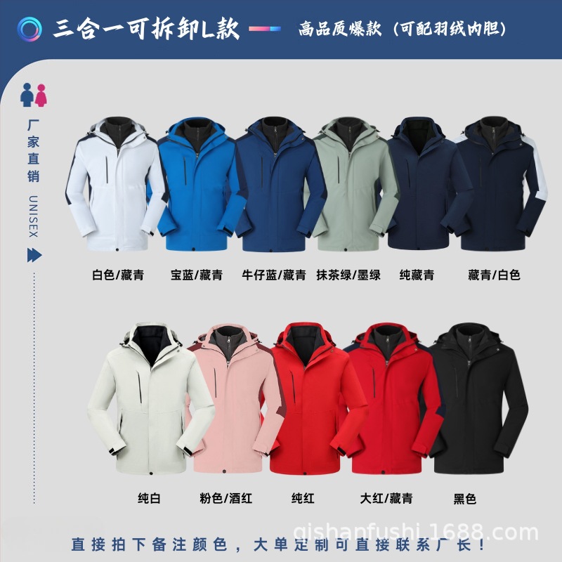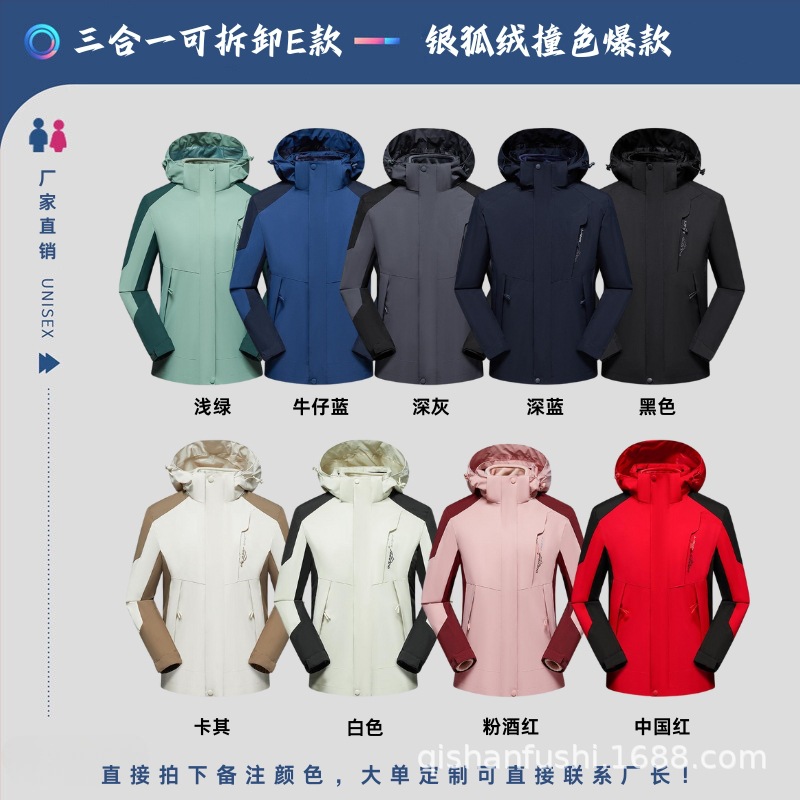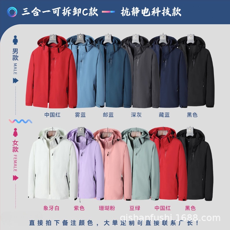 방풍 및 방수 충전 의류 맞춤형 작업복 Three-in-One 분리형 남성용 인쇄 및 자수 로고 겨울 기모 두껍게스토어 가기