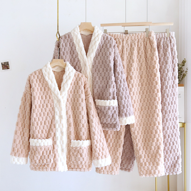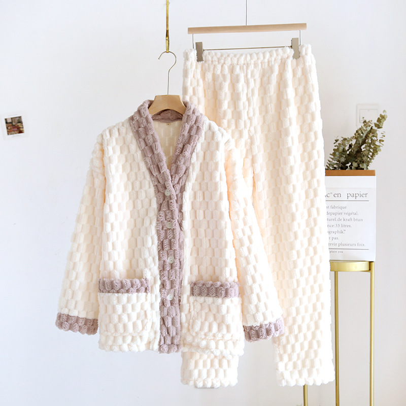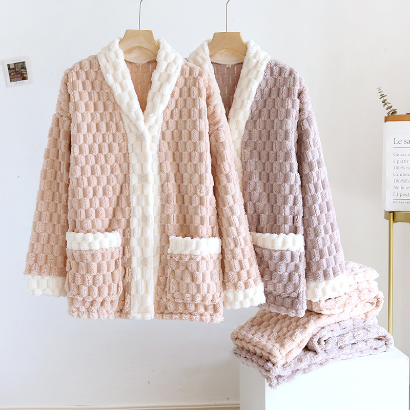 잠옷 여자의 겨울 산호 양털 두꺼운 따뜻한 공주 스타일 달콤한 세트 겨울 플란넬 여자의 가정 옷스토어 가기