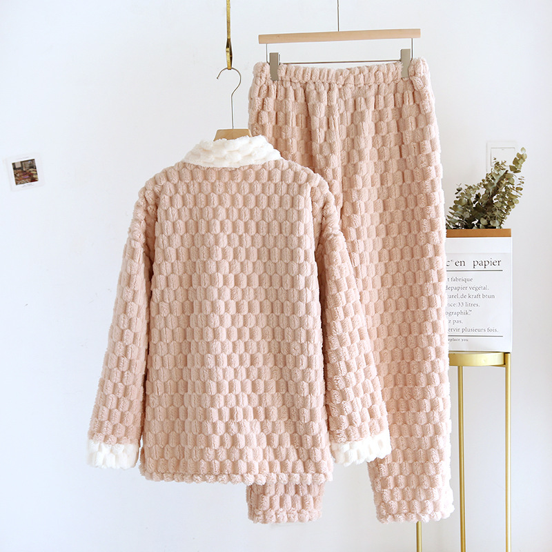 잠옷 여자의 겨울 산호 양털 두꺼운 따뜻한 공주 스타일 달콤한 세트 겨울 플란넬 여자의 가정 옷