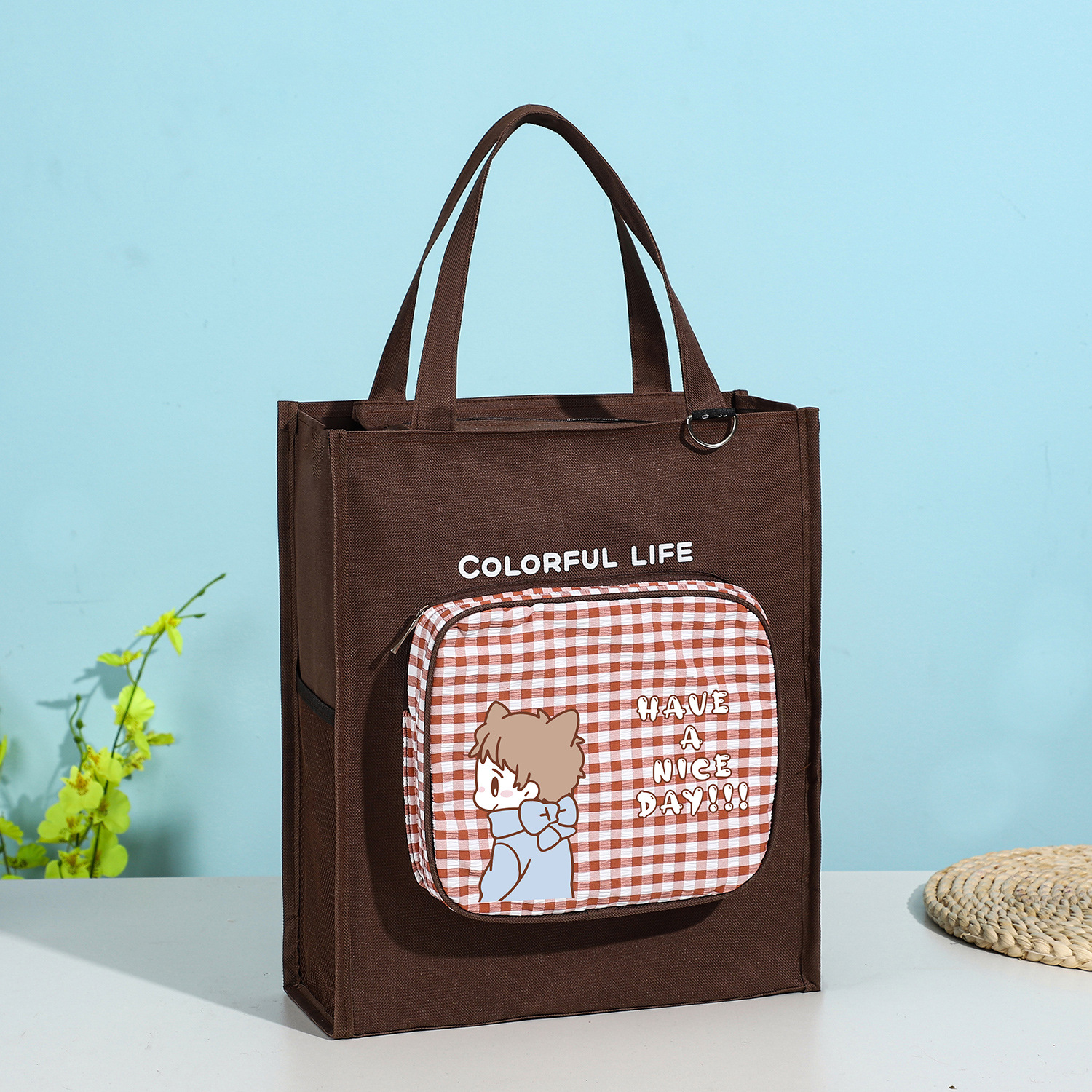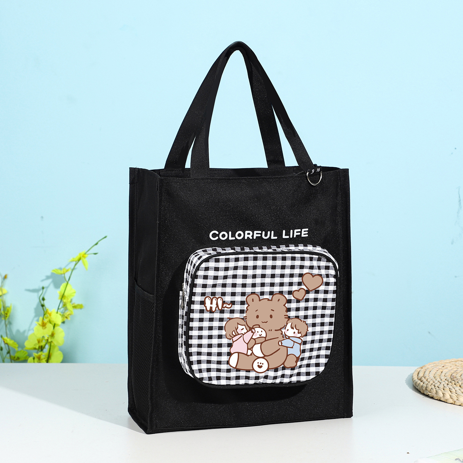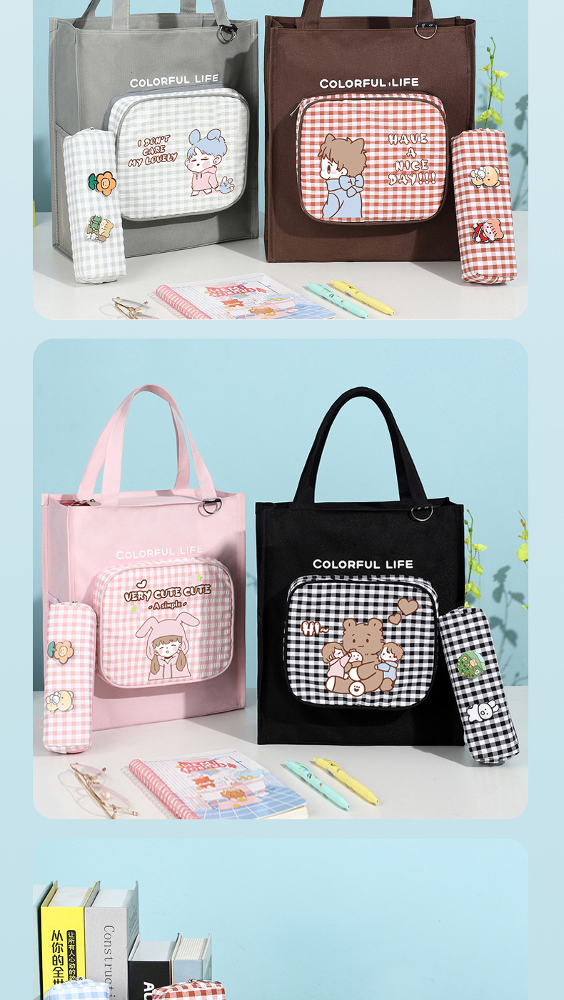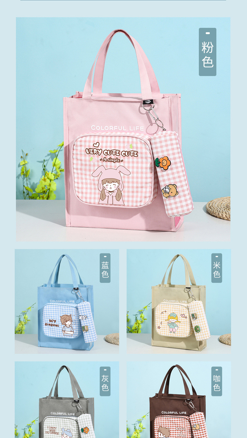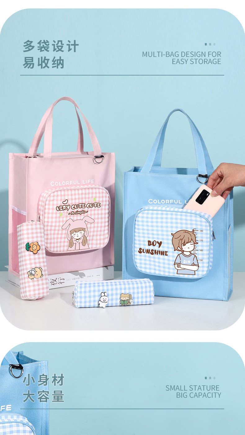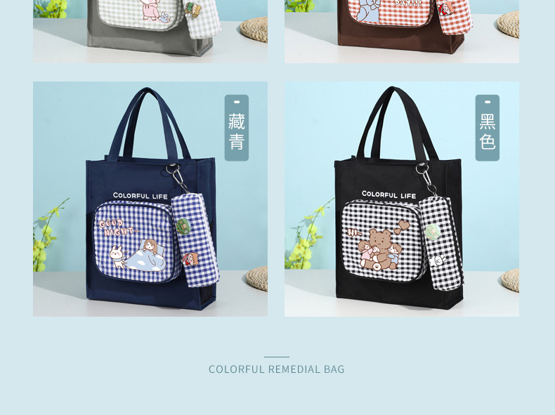 Moyan Yuanqi 소녀의 교정 가방 심플 대용량 옥스포드 천 핸드백 초중고 학생을 위한 한국식 교정 가방스토어 가기