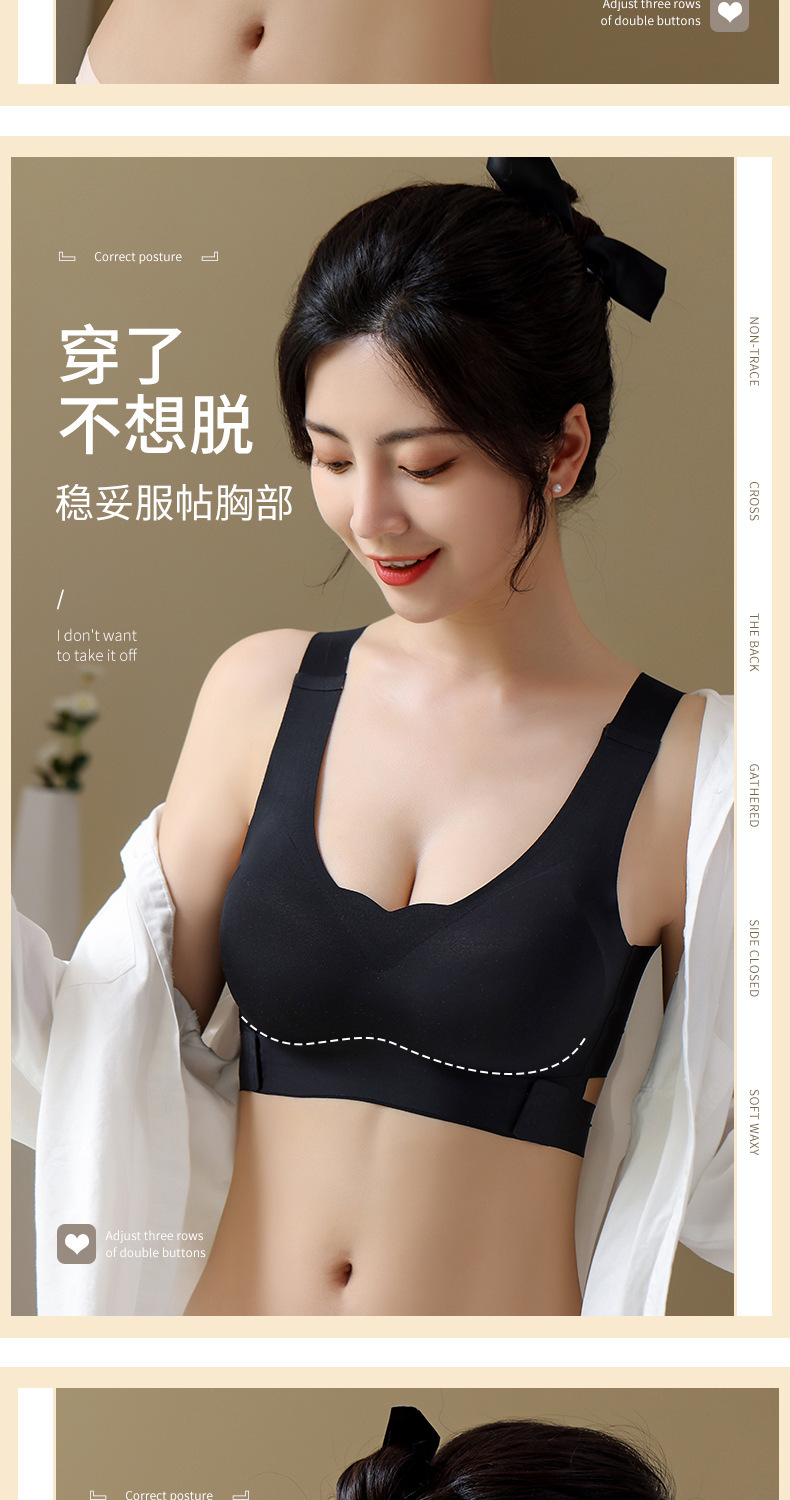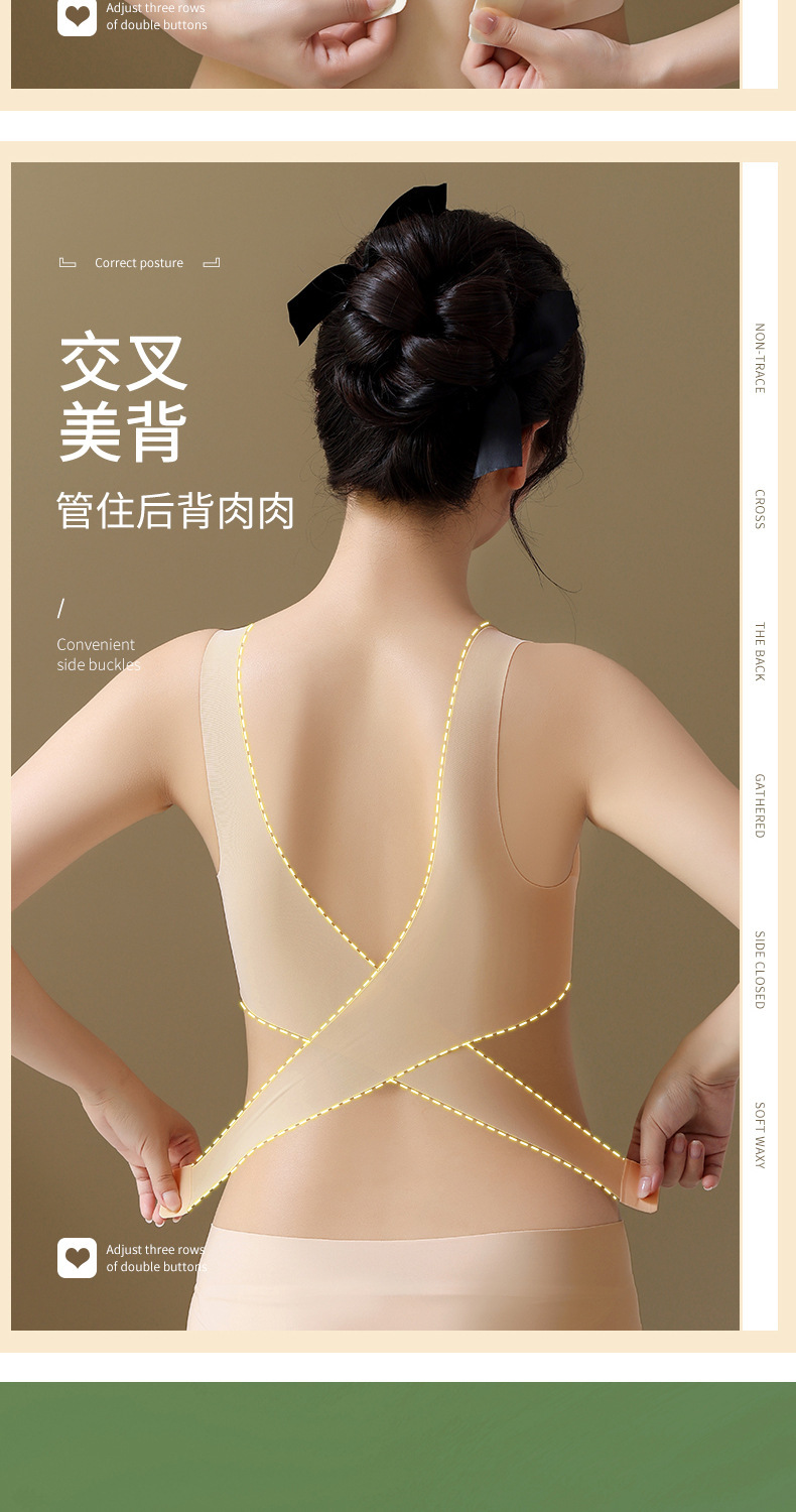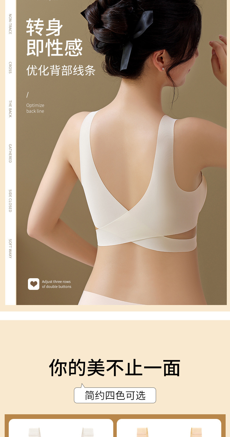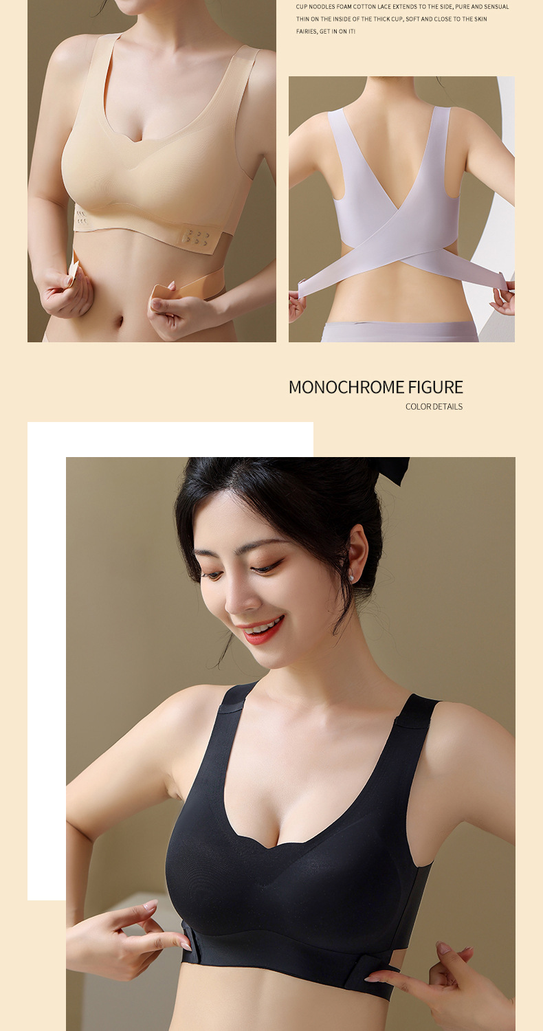 폭발성 차 폴리 페놀 유지 관리 속옷 원활한 작은 가슴 푸시 업 크로스 프론트 사이드 버클 뷰티 백 브라 여성용 반지 없음 속옷스토어 가기