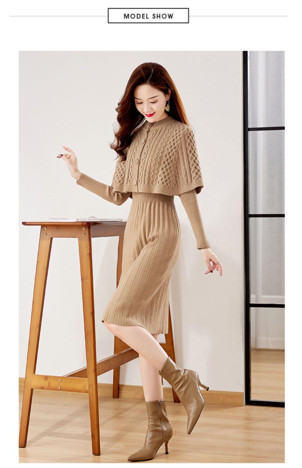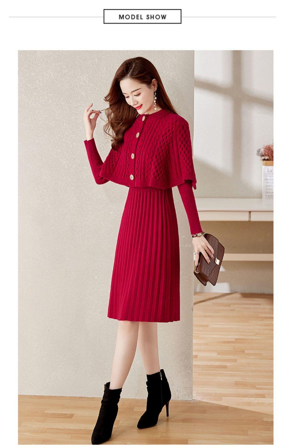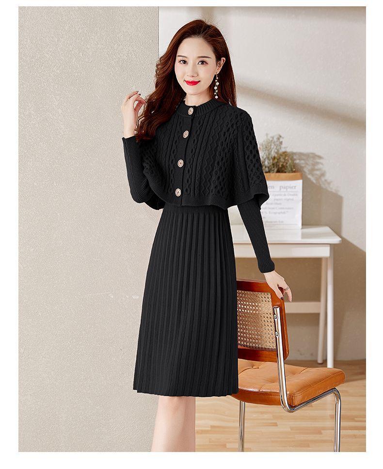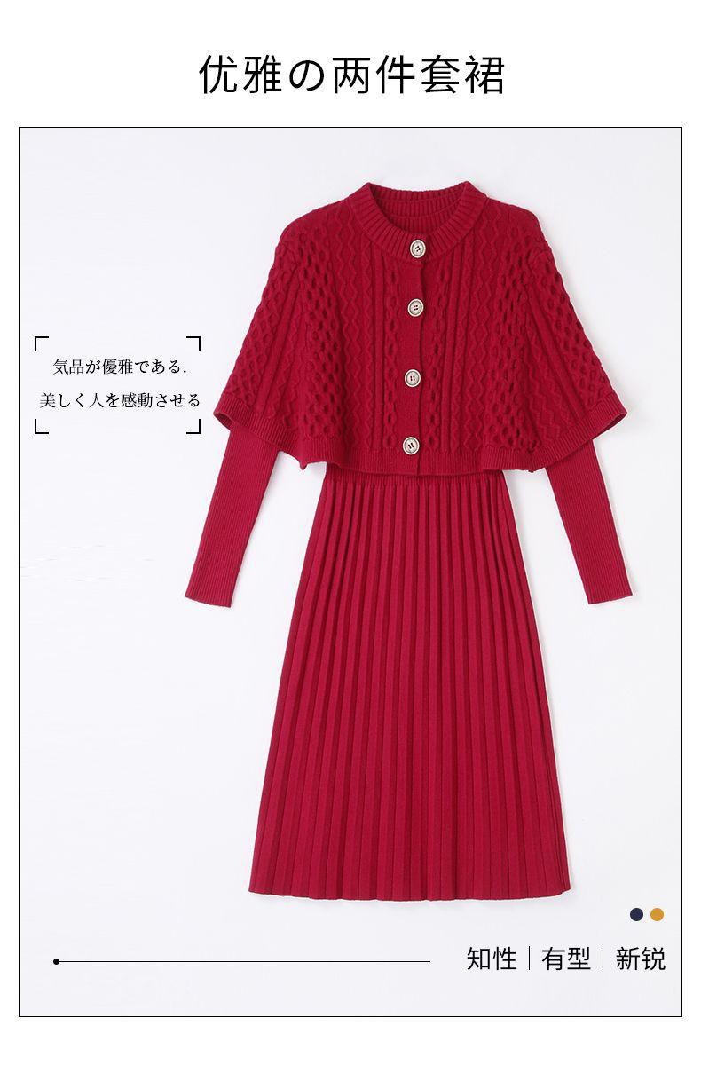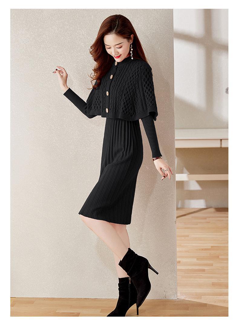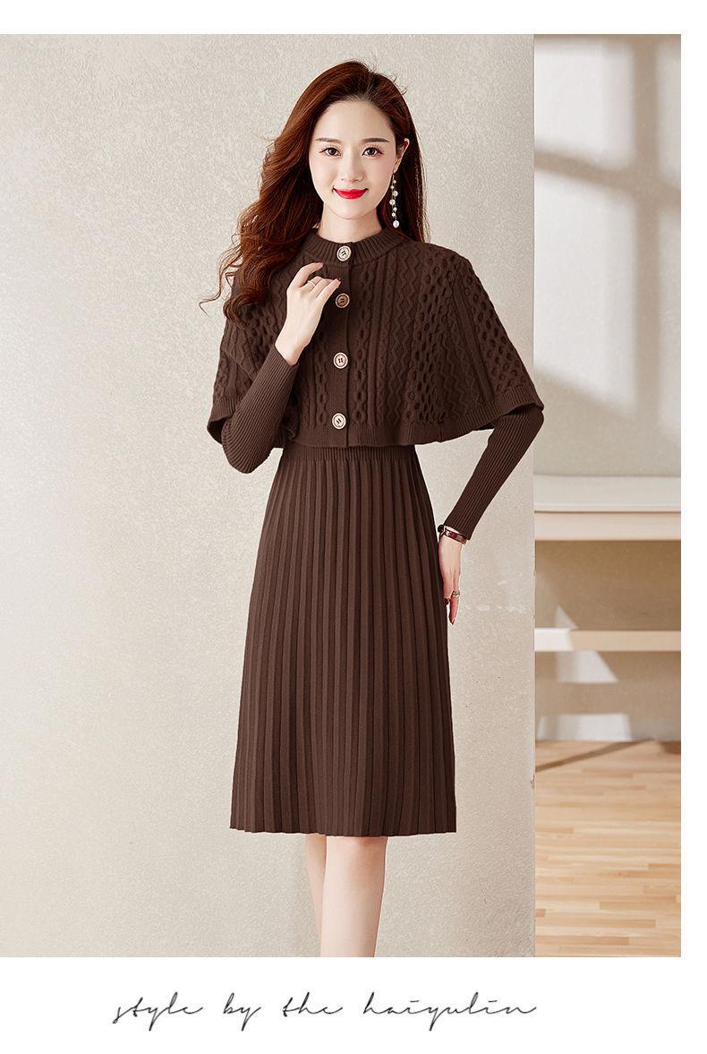 빈티지 젠틀 원피스 여성의 2023 가을과 겨울 새로운 유행 숄 슬림 핏 슬리밍 우아한 니트 투피스 원피스스토어 가기