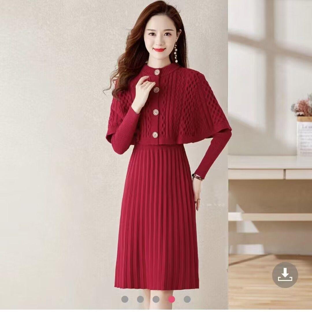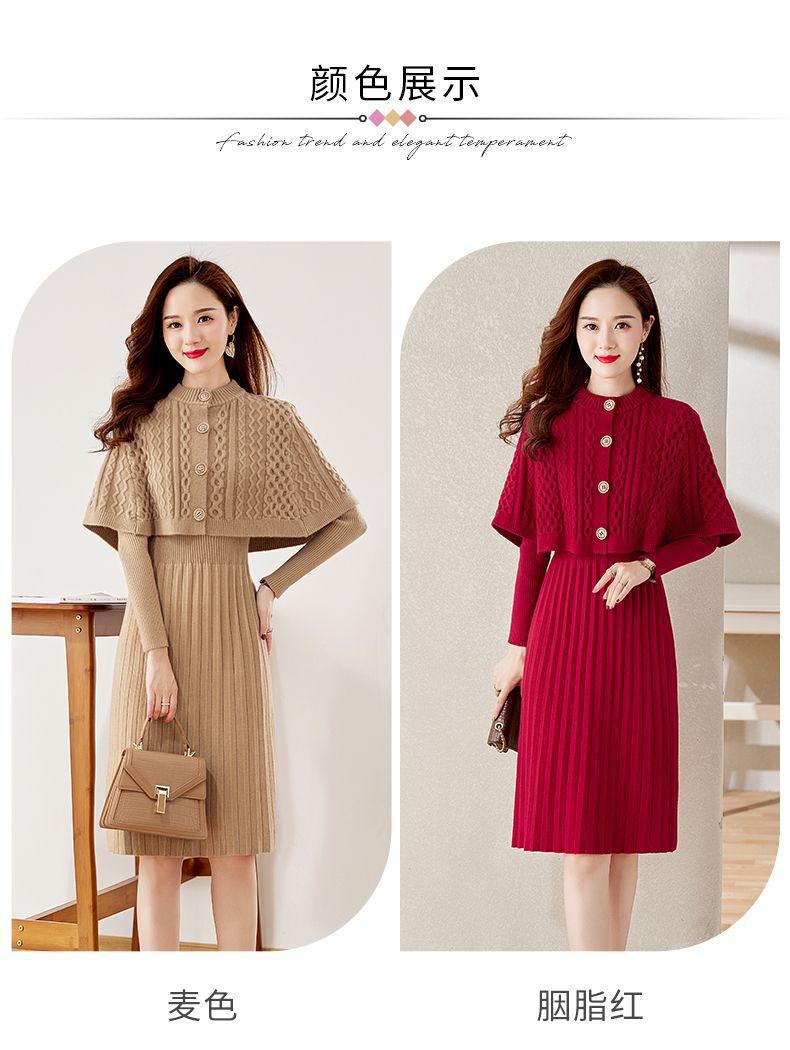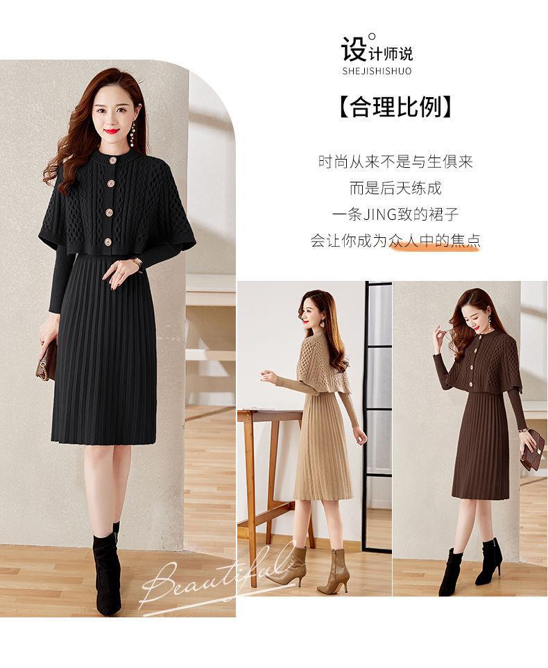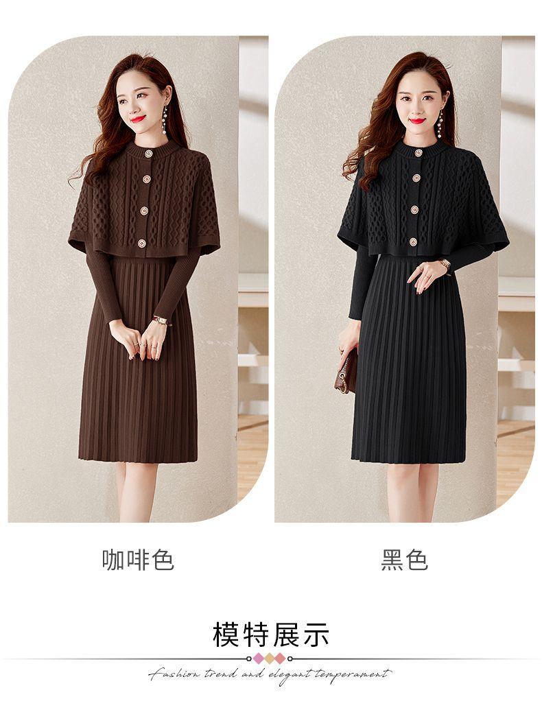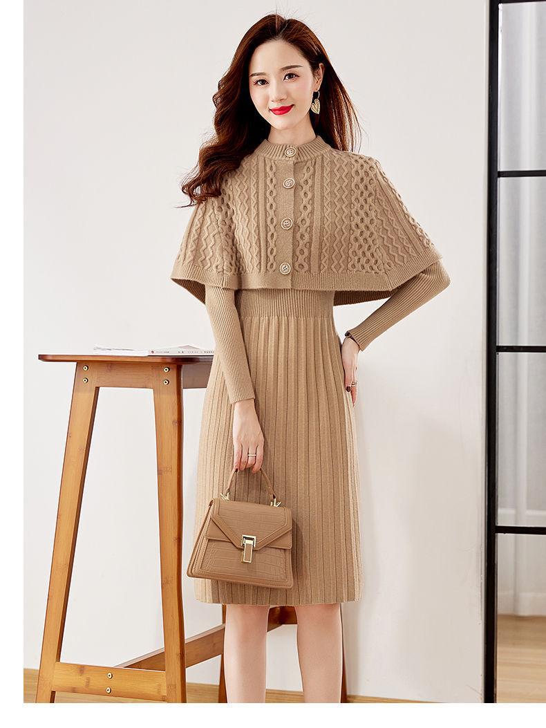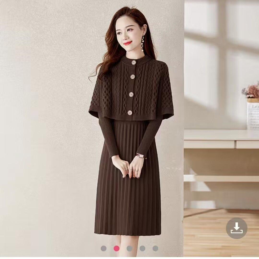 빈티지 젠틀 원피스 여성의 2023 가을과 겨울 새로운 유행 숄 슬림 핏 슬리밍 우아한 니트 투피스 원피스스토어 가기