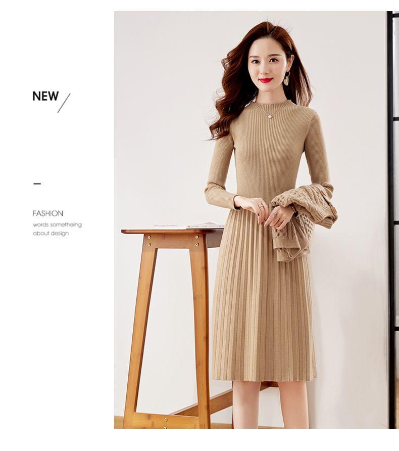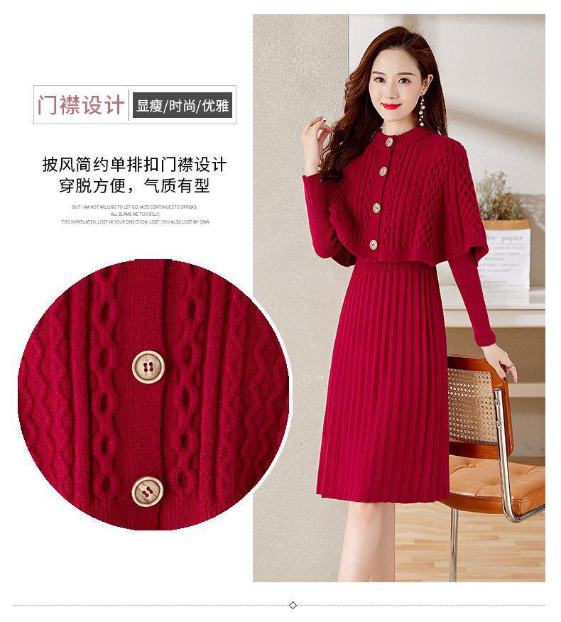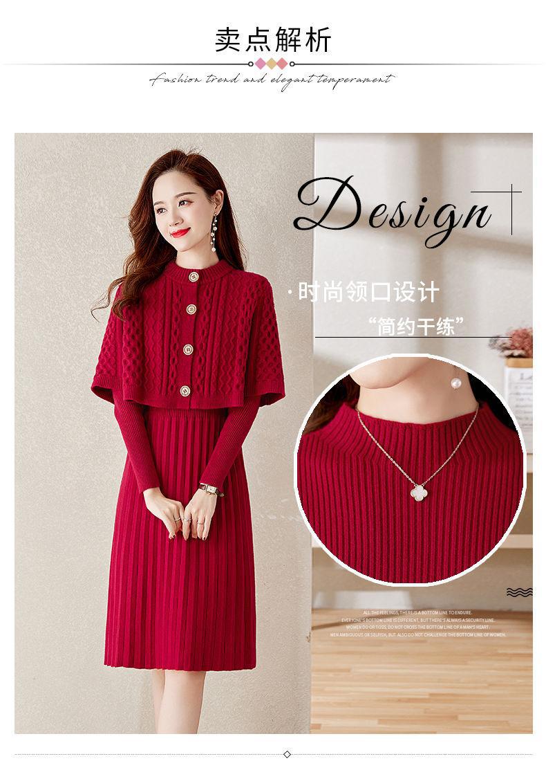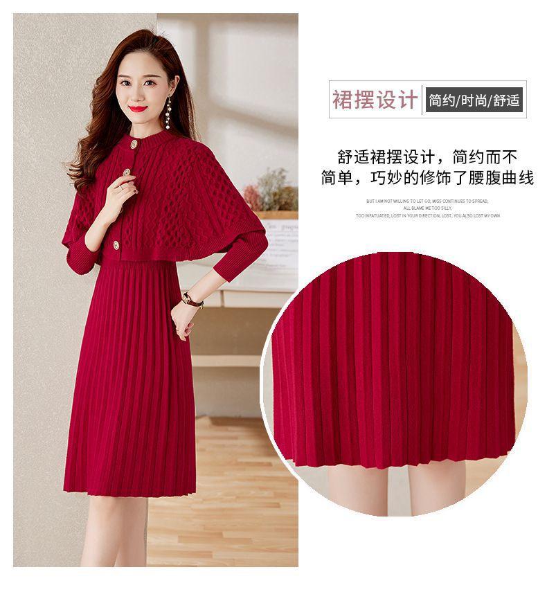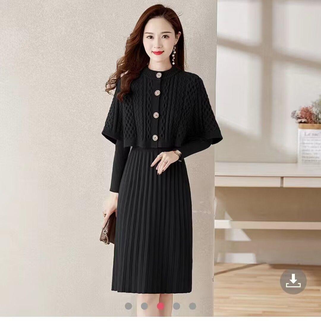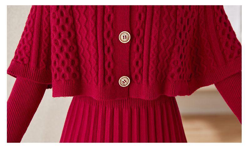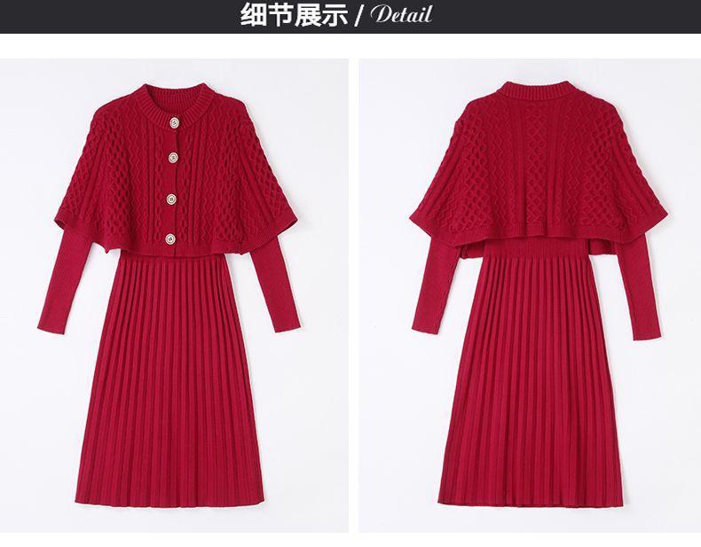 빈티지 젠틀 원피스 여성의 2023 가을과 겨울 새로운 유행 숄 슬림 핏 슬리밍 우아한 니트 투피스 원피스스토어 가기