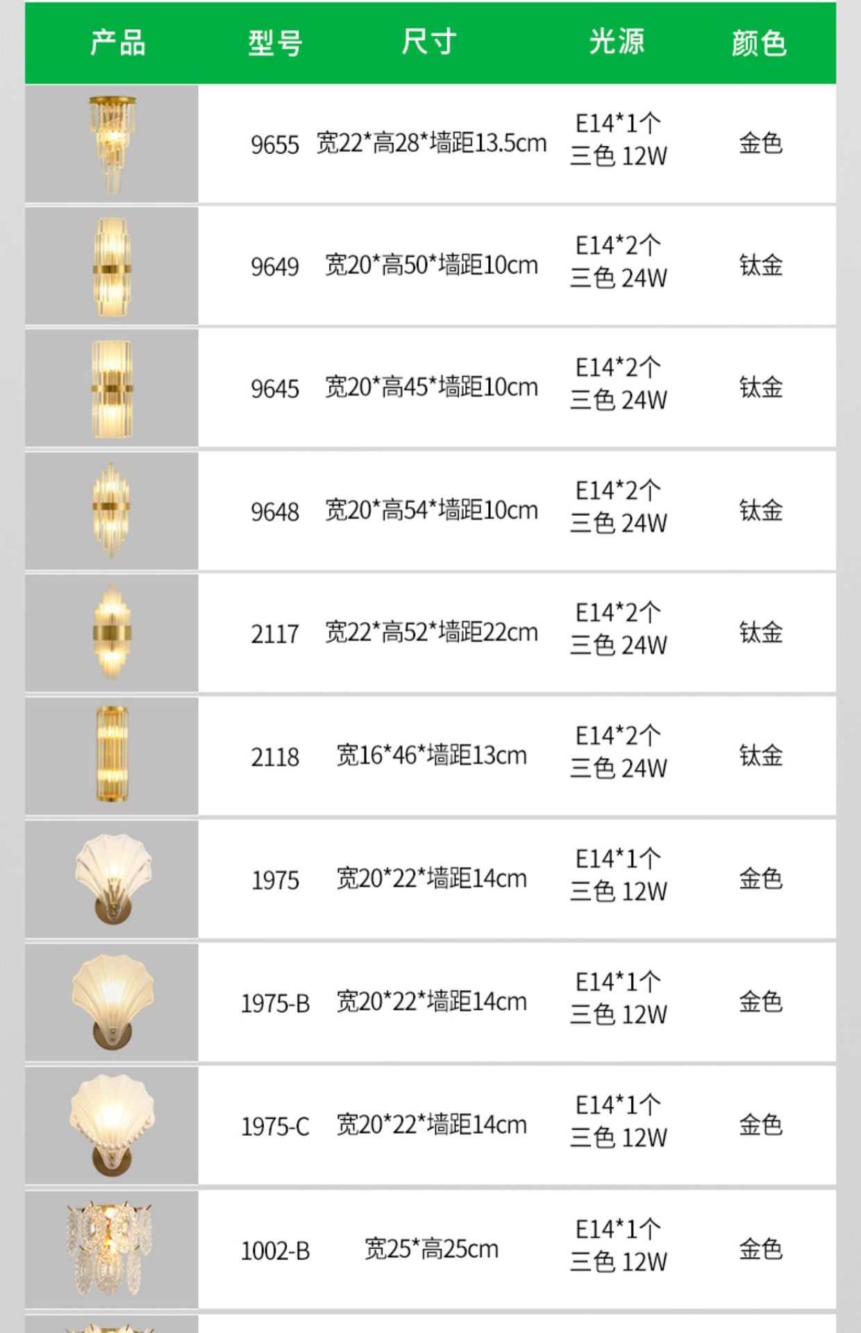 • 1002 벽 램프-세 가지 색상-전체 스펙트럼