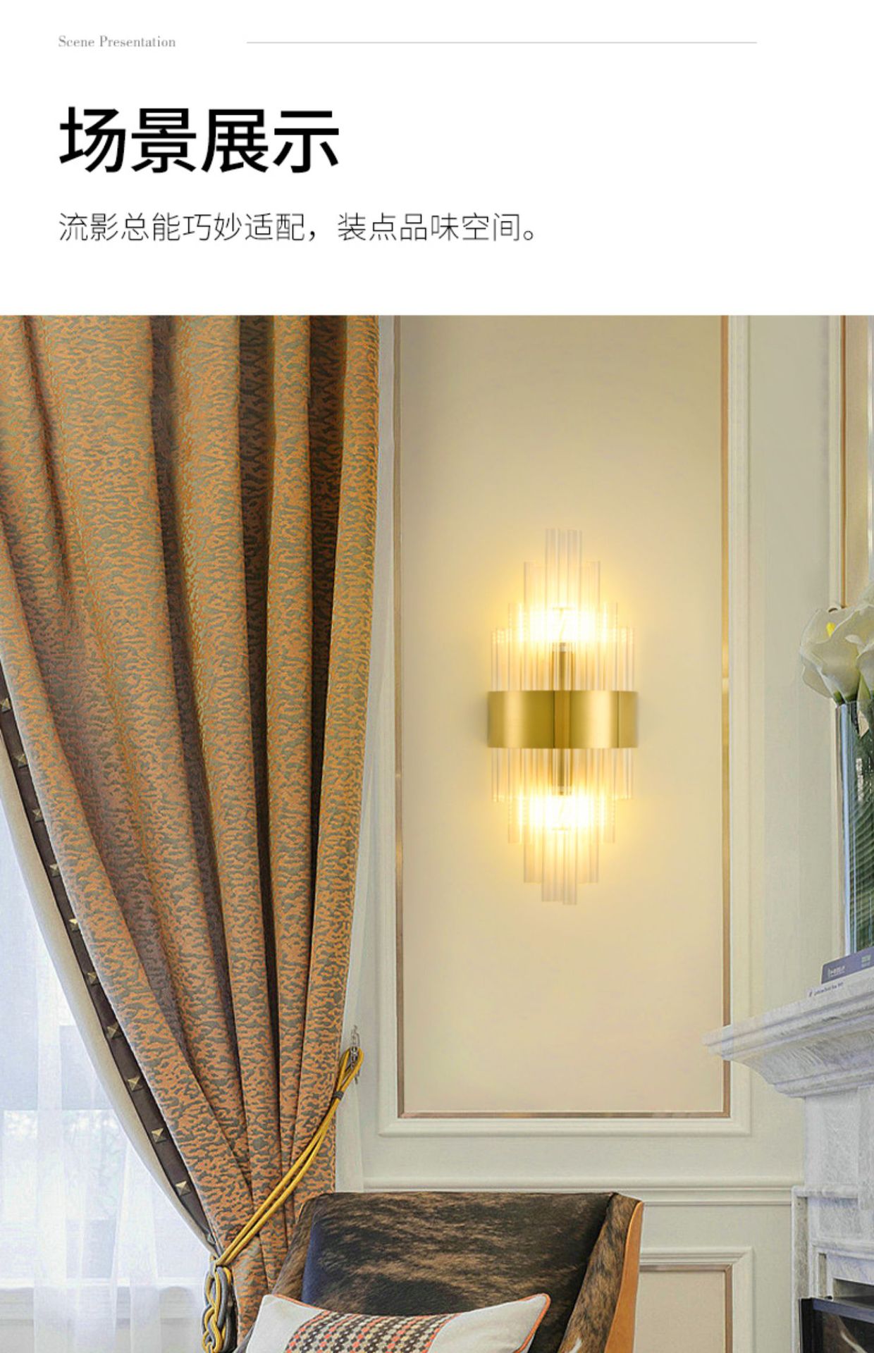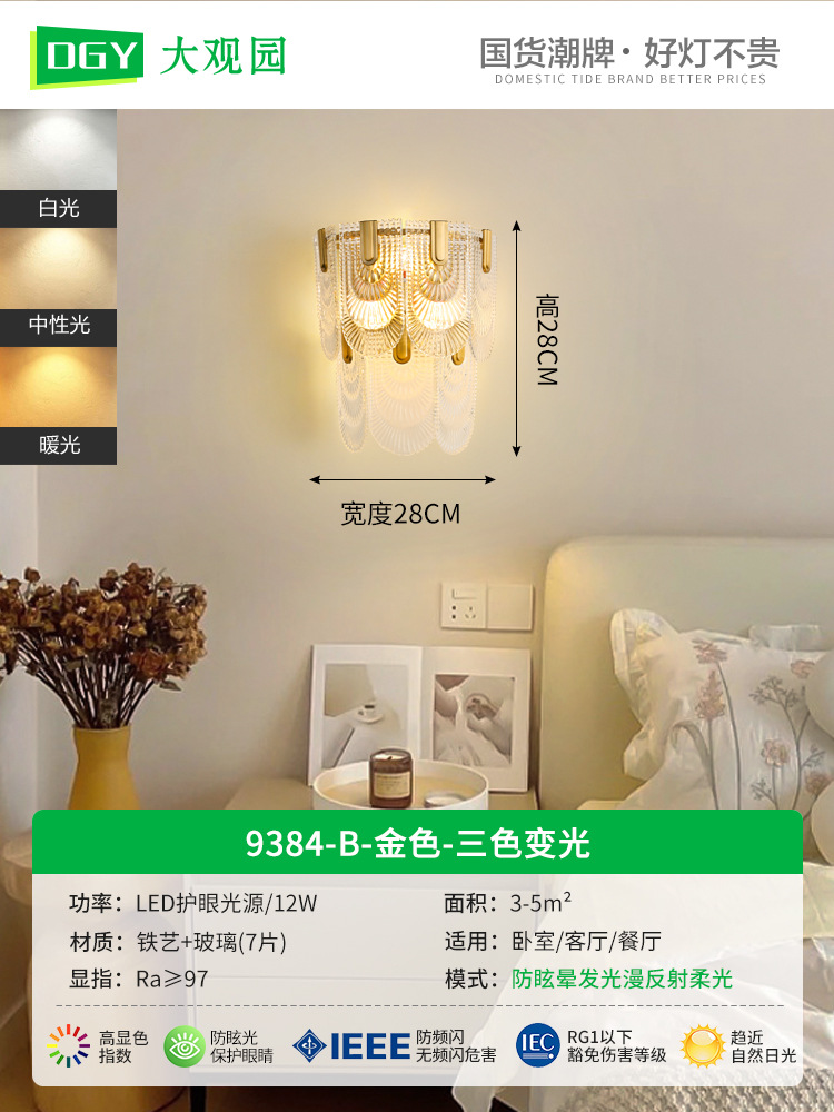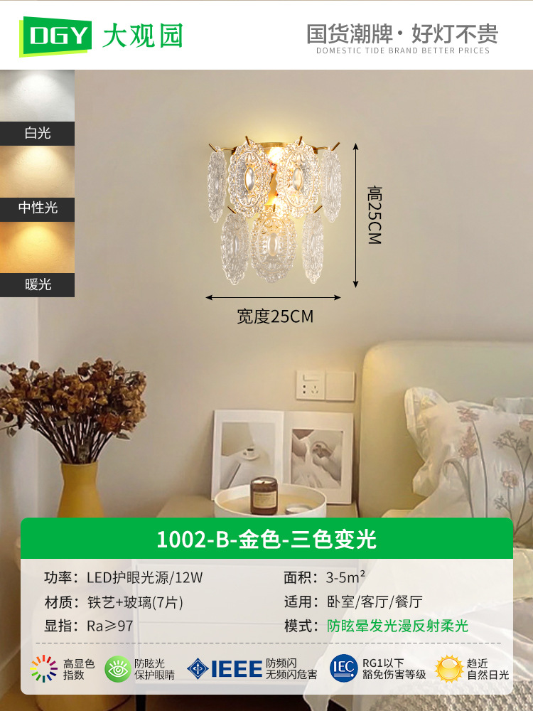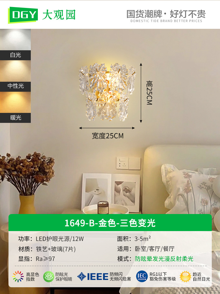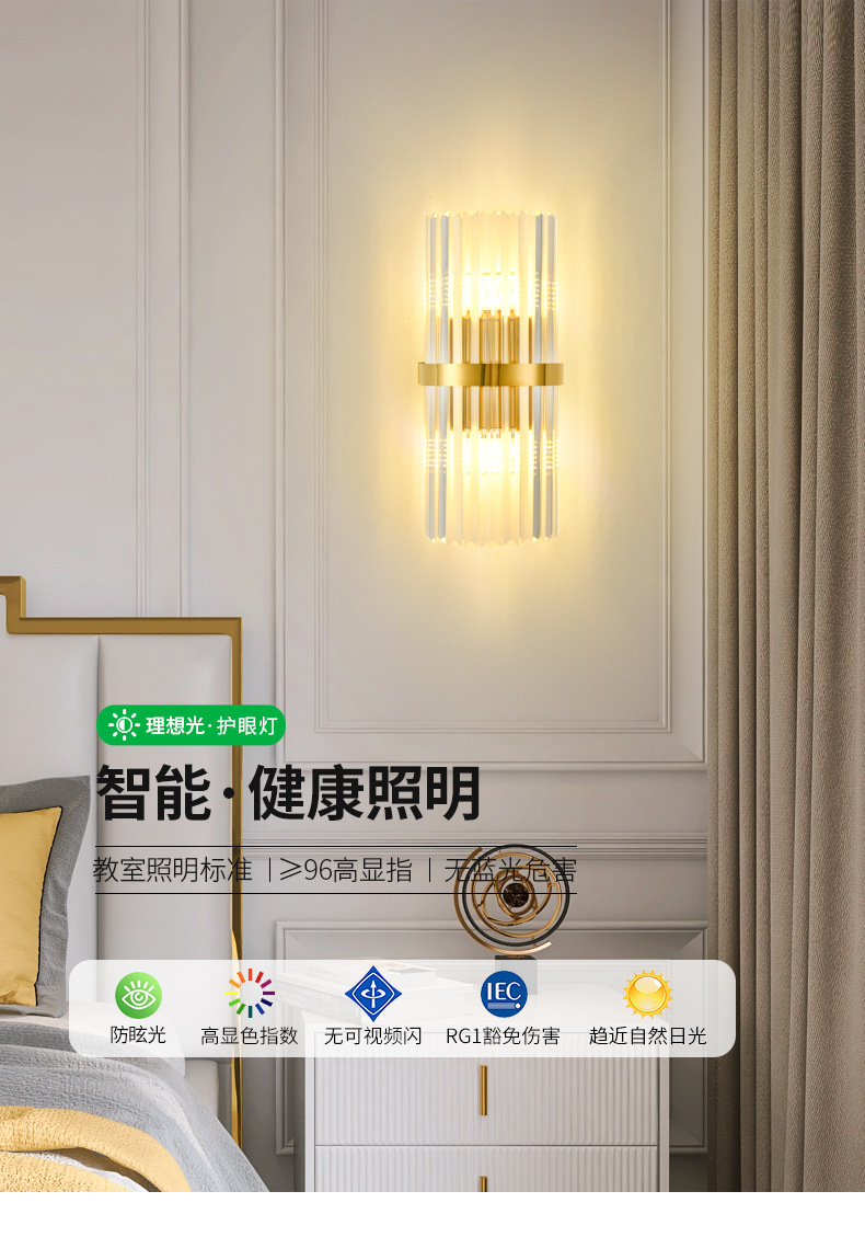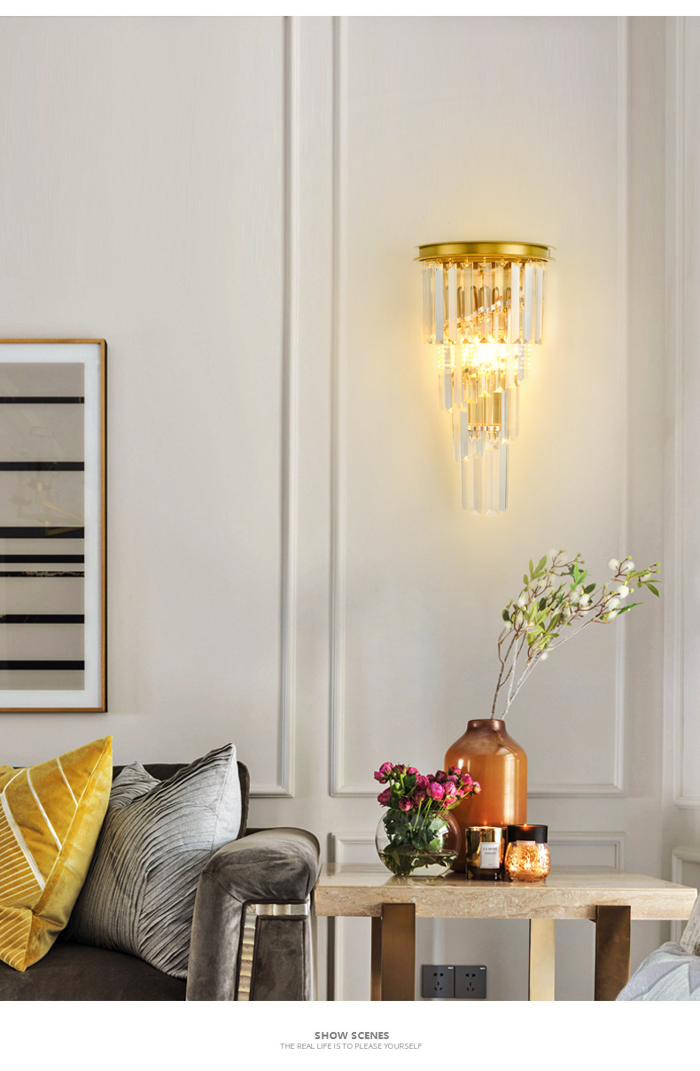 대관원 벽등 침대 옆등 심플 계단 거실 배경벽 프렌치 라이트 럭셔리 크리스탈 램프 중산 조명 485L