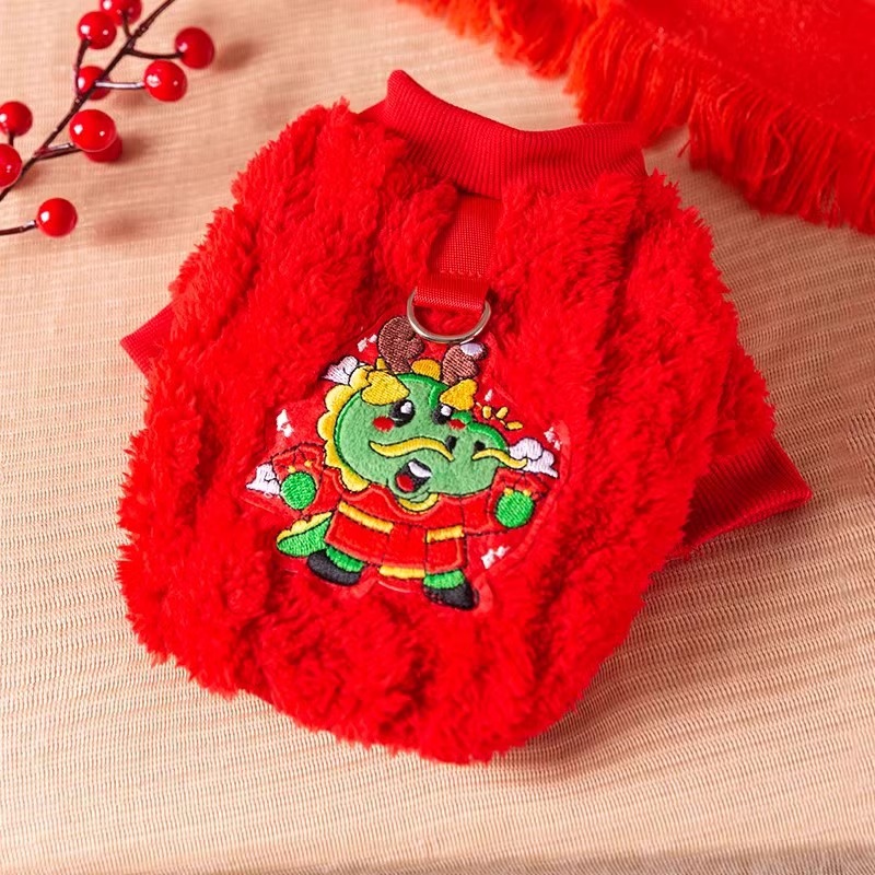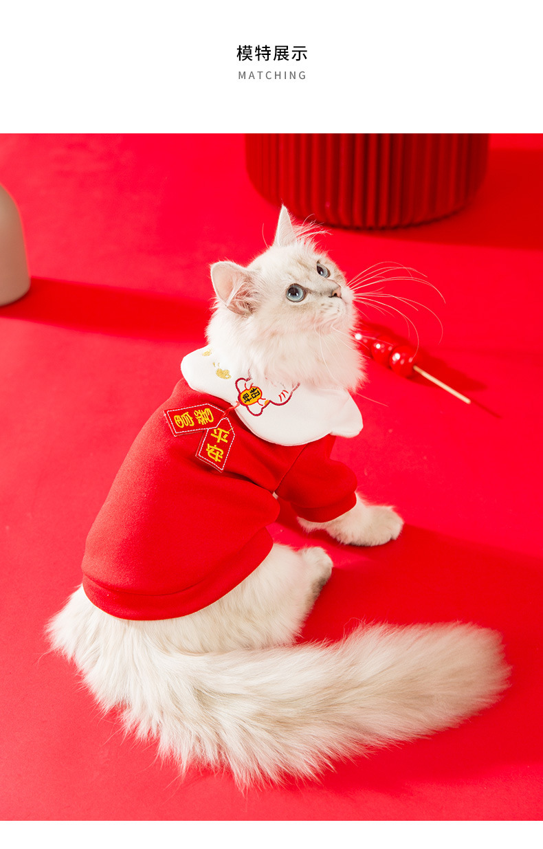 새해용 얇은 벨벳 고양이와 강아지 옷 비숑 중소형견용 축제 의상 새해맞이 의상 애완동물 옷스토어 가기
