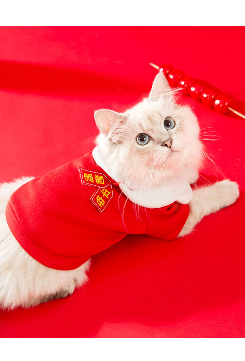 새해용 얇은 벨벳 고양이와 강아지 옷 비숑 중소형견용 축제 의상 새해맞이 의상 애완동물 옷