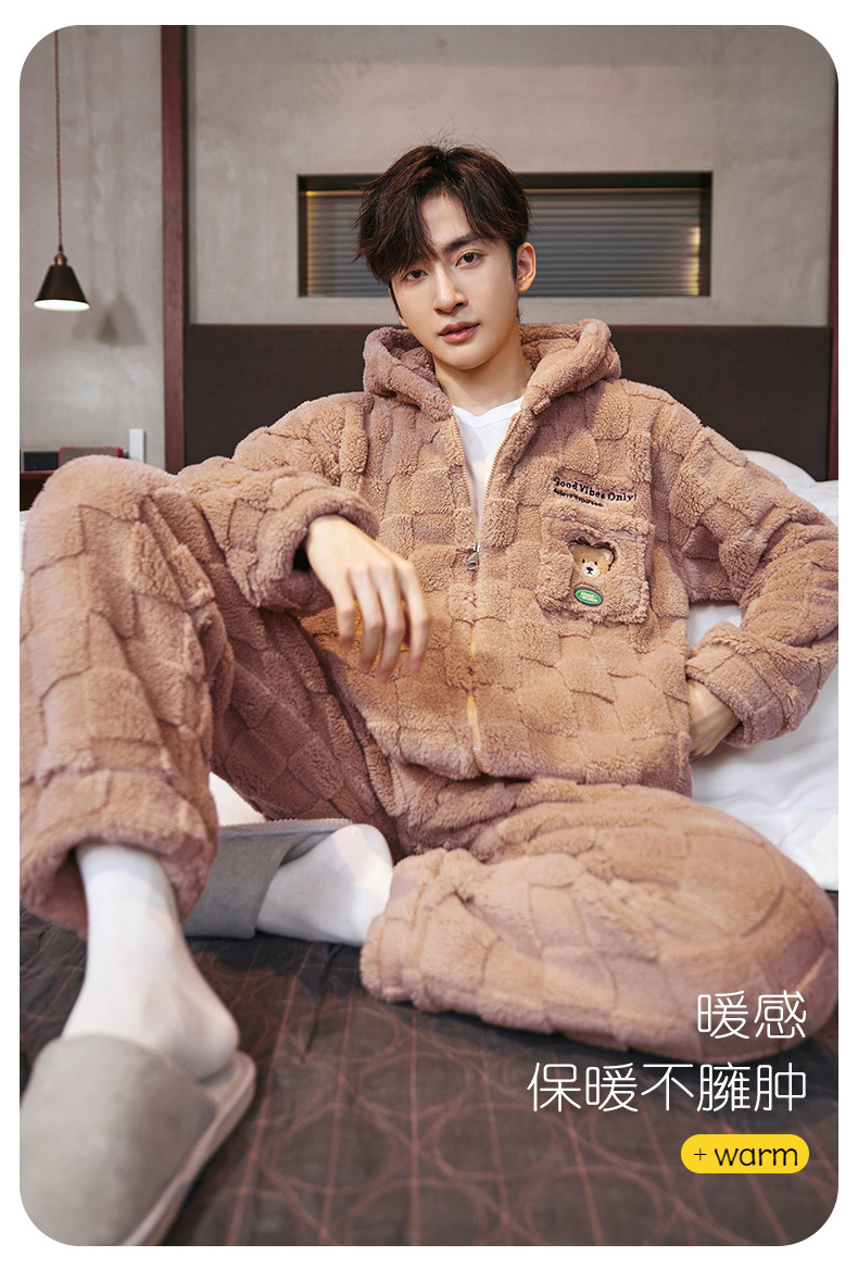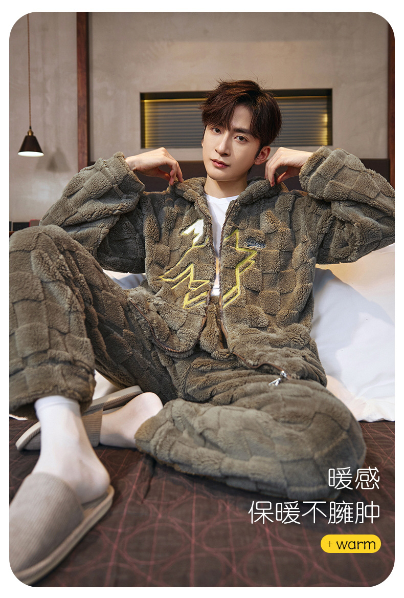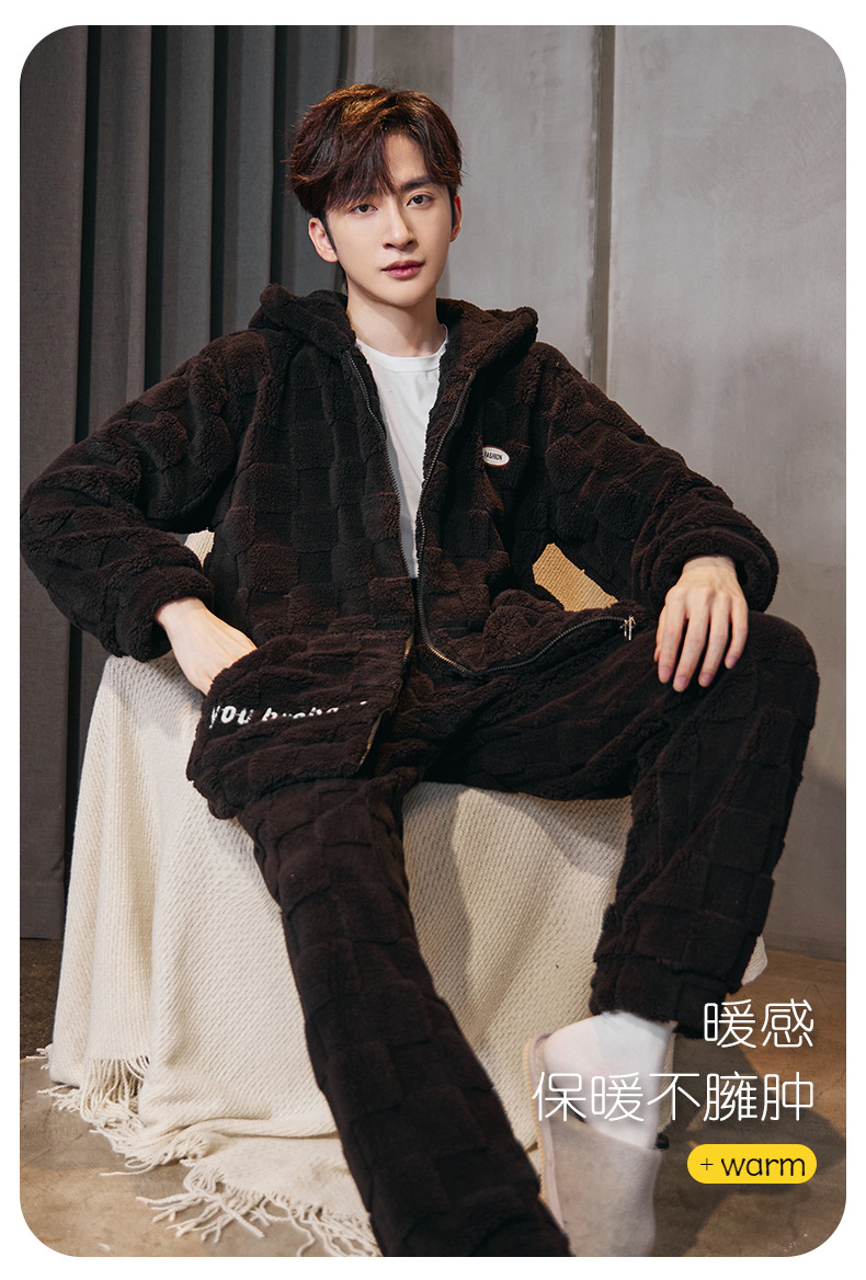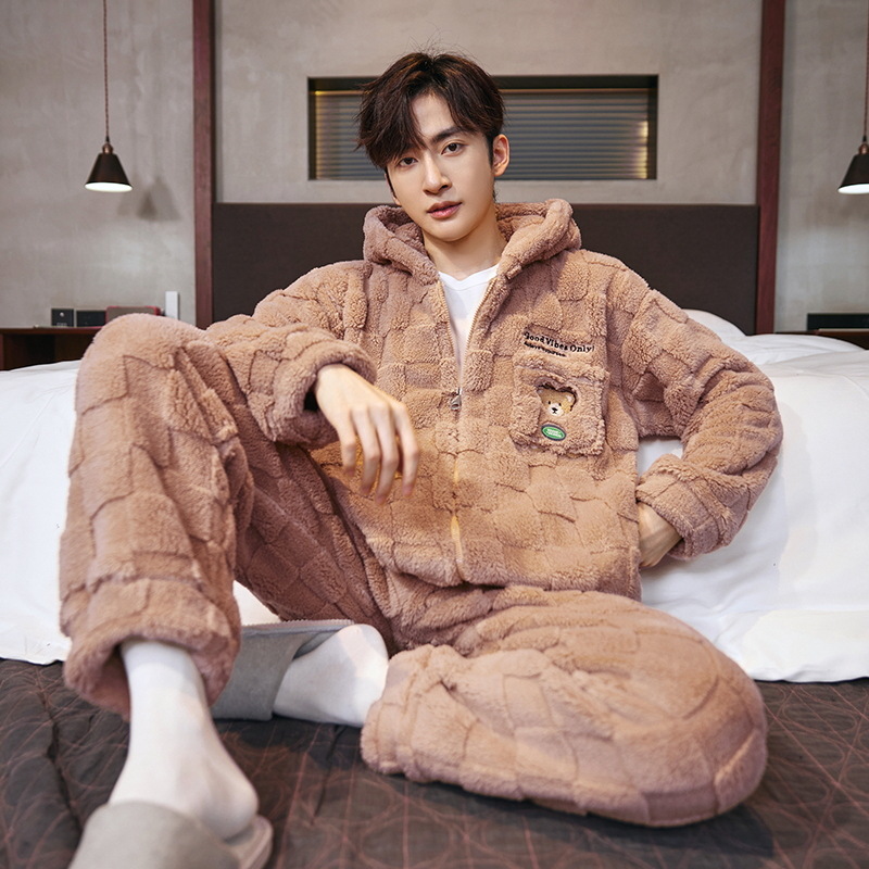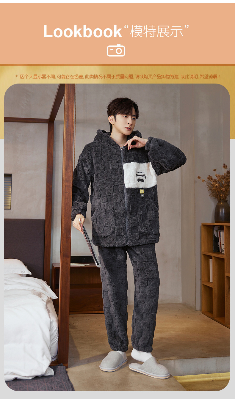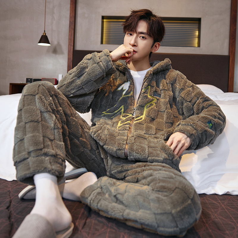 도매 새로운 가을과 겨울 잠옷 남자의 플란넬 후드 지퍼 패딩 카디건 캐주얼 플러스 사이즈 가정 의류 세트스토어 가기