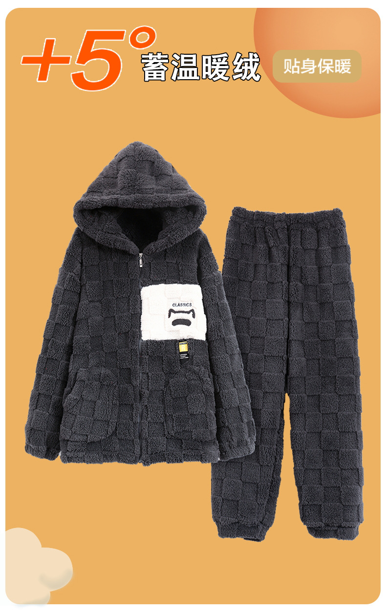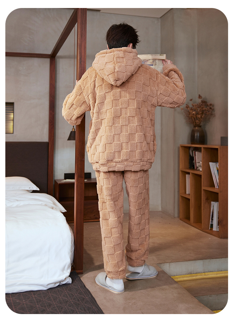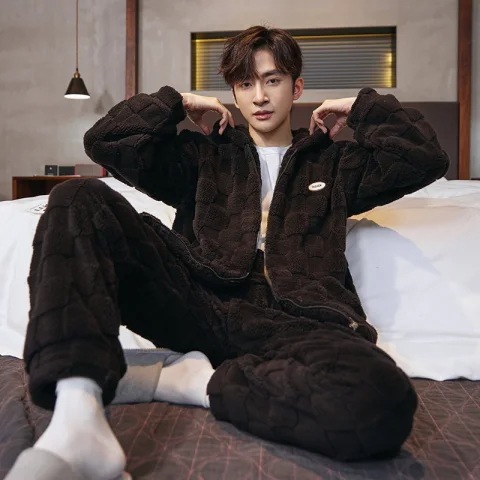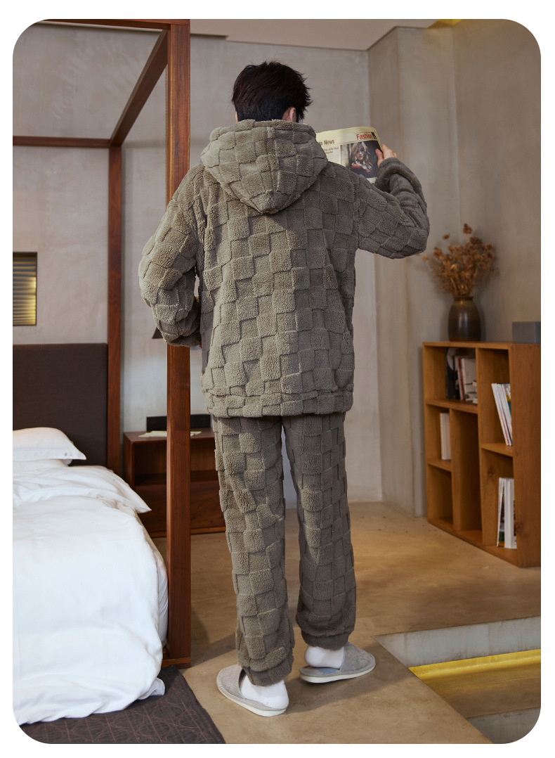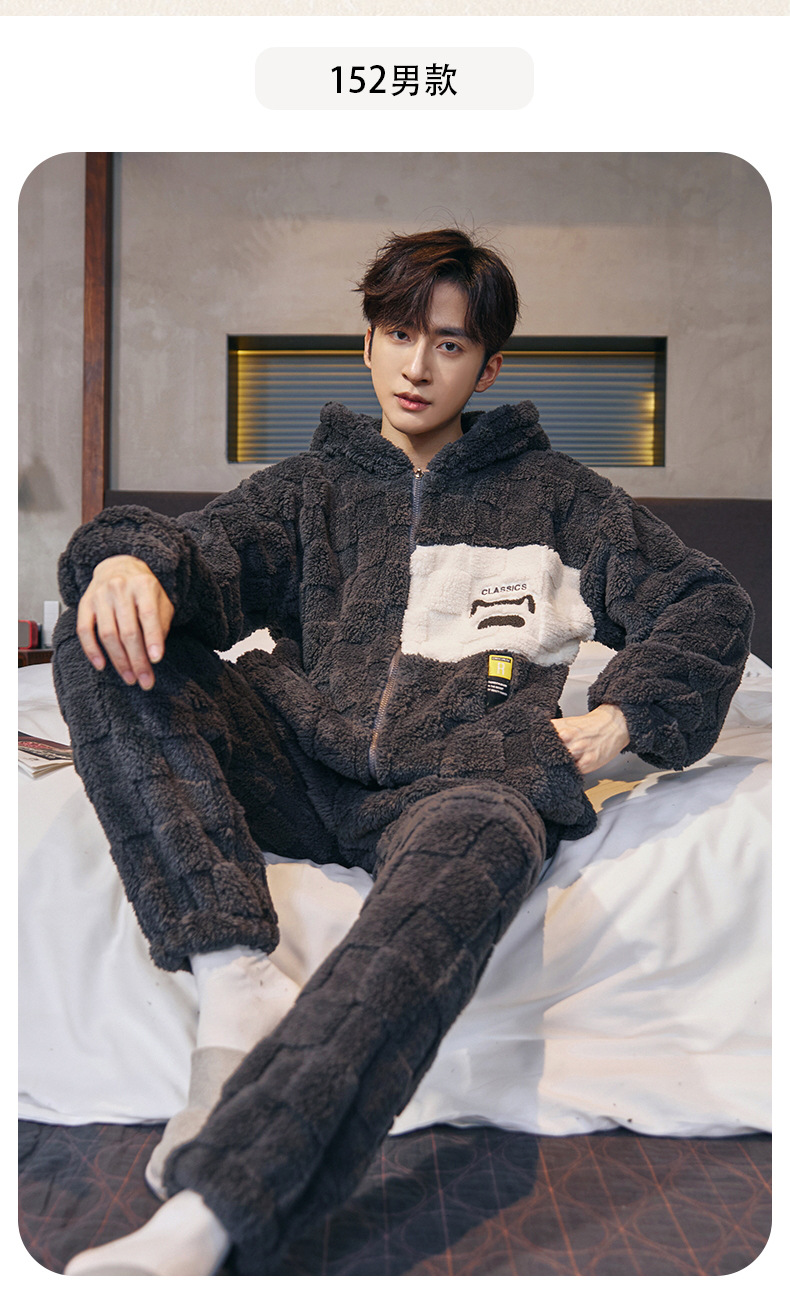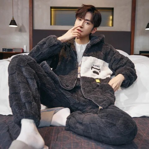 도매 새로운 가을과 겨울 잠옷 남자의 플란넬 후드 지퍼 패딩 카디건 캐주얼 플러스 사이즈 가정 의류 세트스토어 가기