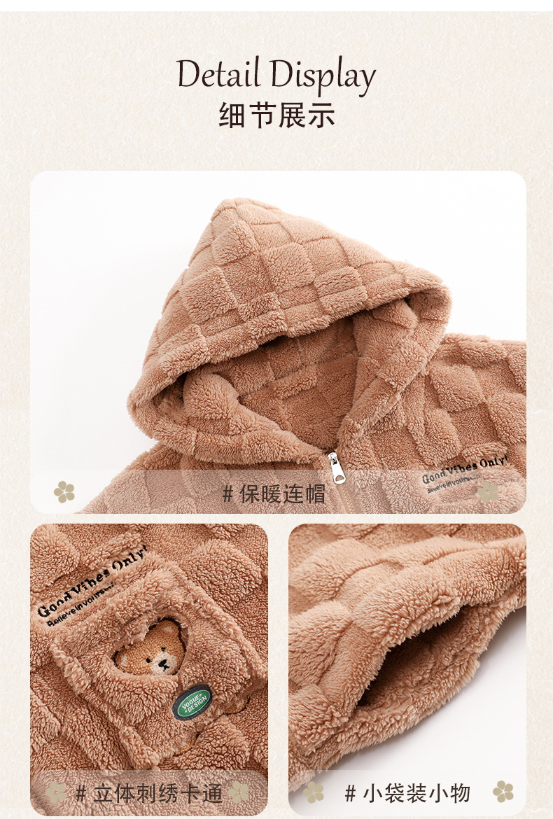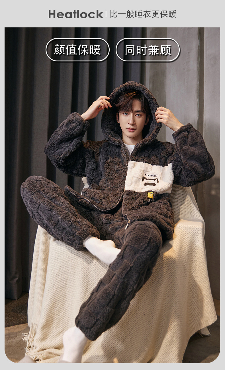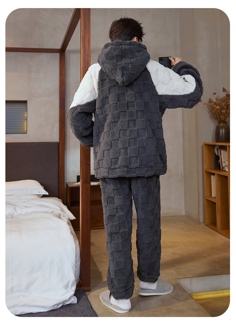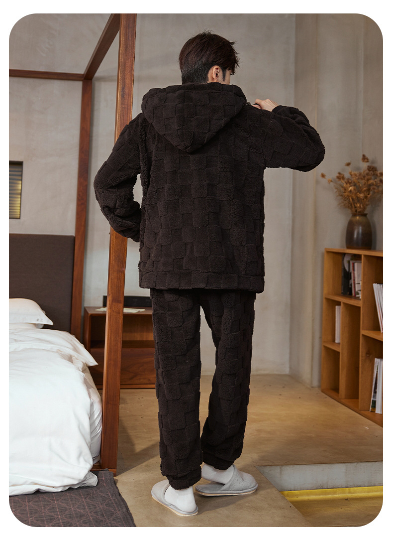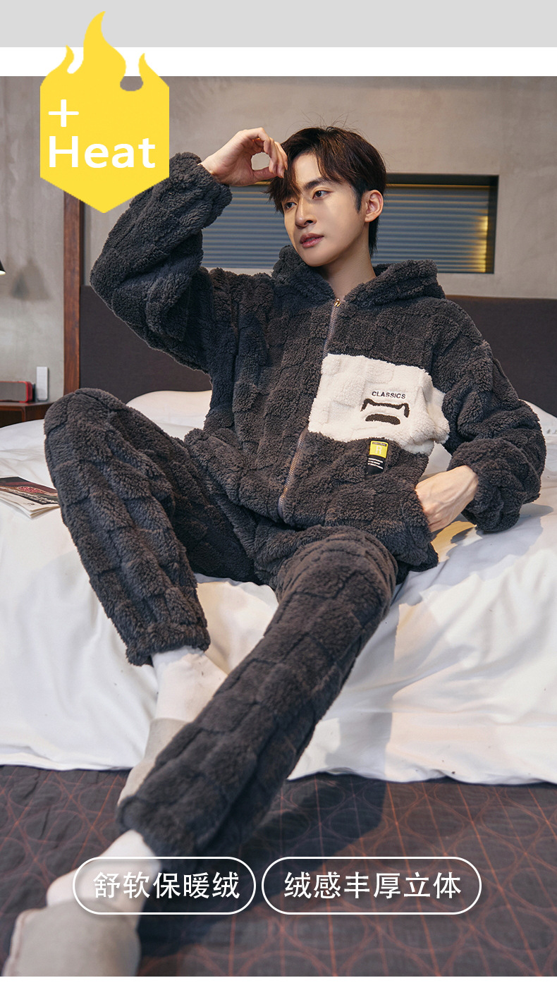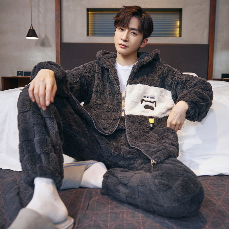 도매 새로운 가을과 겨울 잠옷 남자의 플란넬 후드 지퍼 패딩 카디건 캐주얼 플러스 사이즈 가정 의류 세트