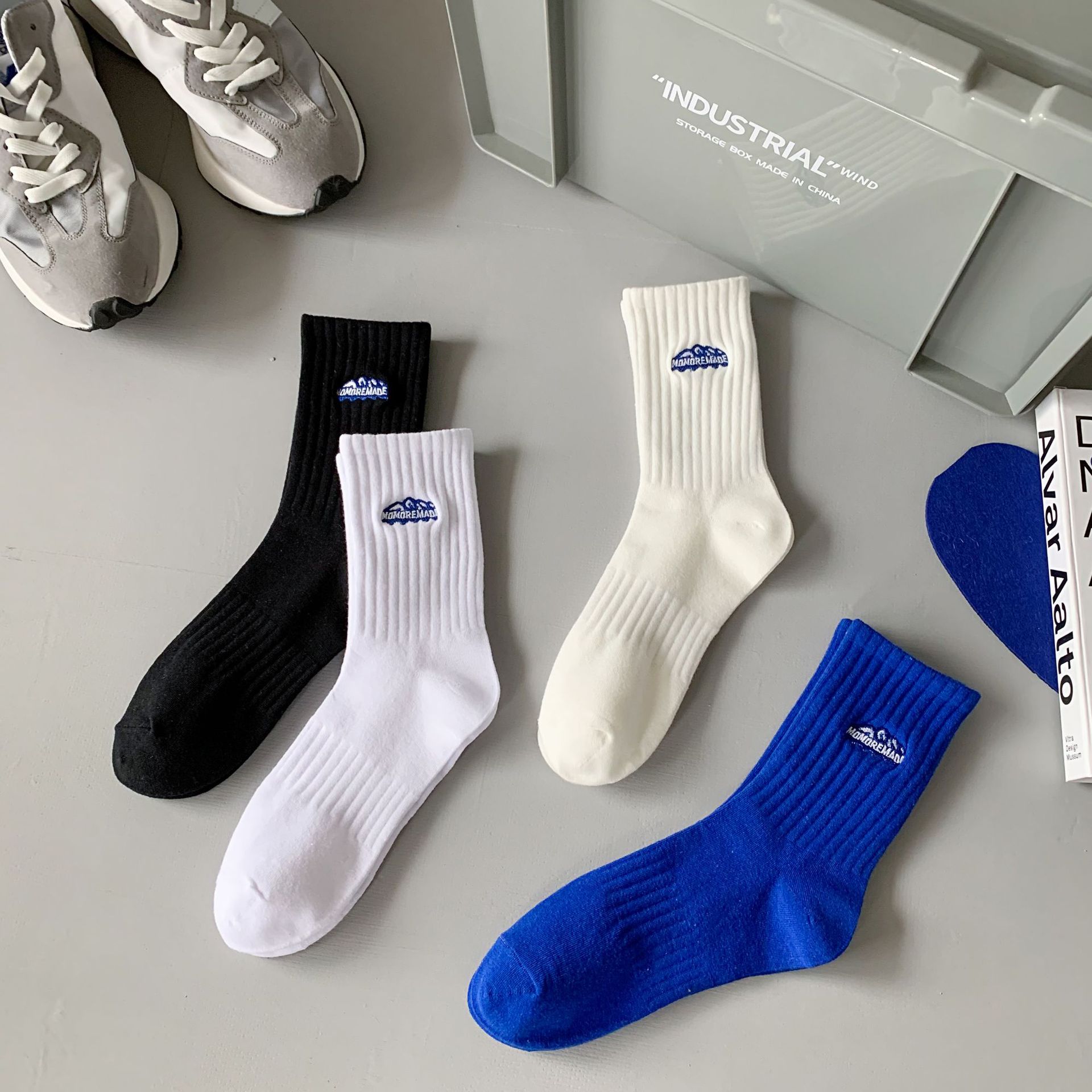 자수 레터링 봄 여름 중목 양말 순면 컬리지 스타일 트렌디 남녀 커플 스포츠 양말 주지 레터링 자수