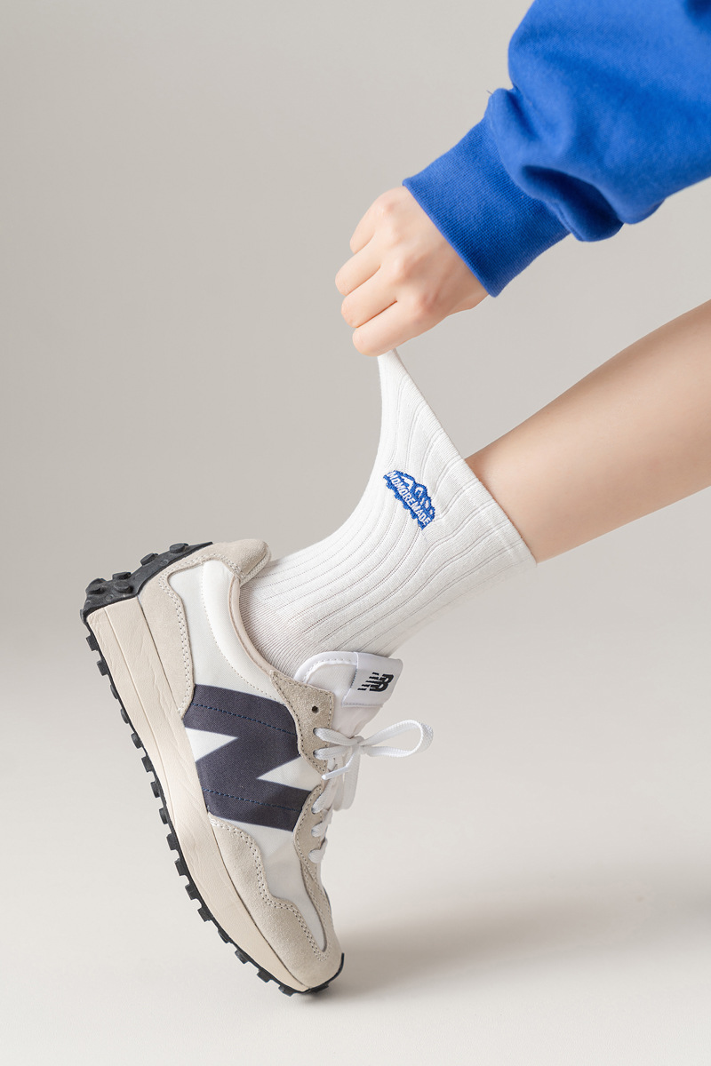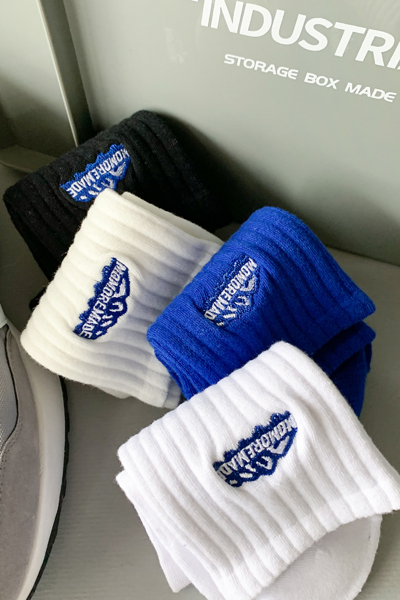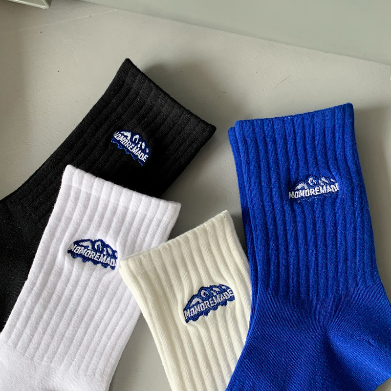 자수 레터링 봄 여름 중목 양말 순면 컬리지 스타일 트렌디 남녀 커플 스포츠 양말 주지 레터링 자수스토어 가기