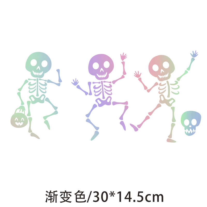 할로윈 춤 해골 자동차 스티커 레이저 반사 외국 무역 자동차 창 유리 악마 구멍 테마 스티커 종이 방수