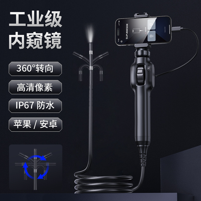 국경 간 인기 제품 360도 회전 내시경 산업용 파이프라인 자동차 수리 감지기 휴대용 내시경 휴대 전화 OTG스토어 가기