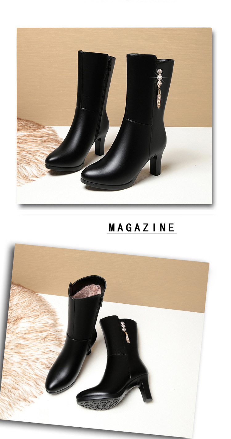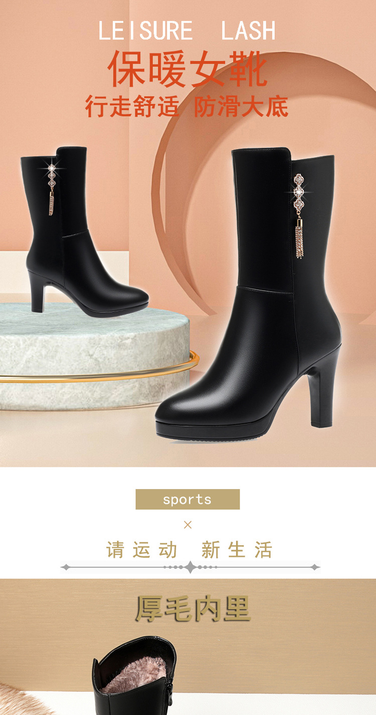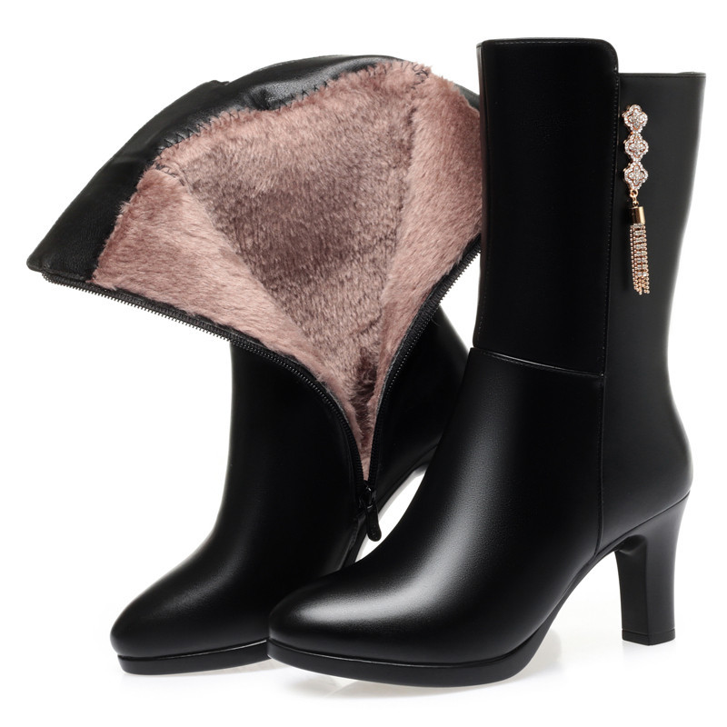 중간 부츠 여성의 겨울 새로운 하이힐 방수 테이블 우아한 여성 부츠 편안한 패션 부츠 기모 따뜻한 여성의 가죽 부츠