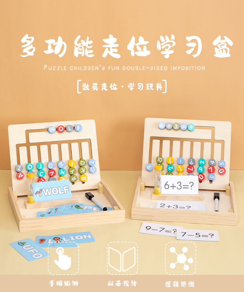 양면 디지털 영어 워킹 게임 퍼즐 계산 수학 나무 조기 교육 아기 다기능 학습 보조 상자