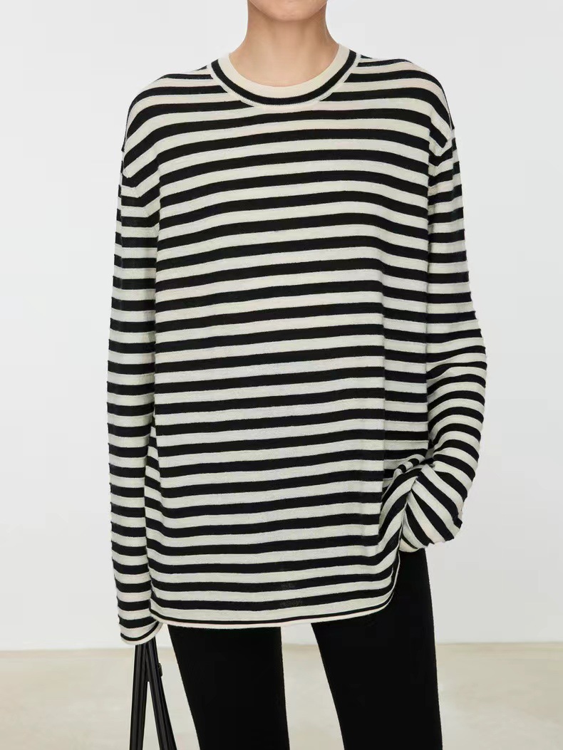 JOC 같은 스타일 켄 빈 스타일 기계 세탁기 3 차원 스트라이프 루스 레트로 니트 셔츠 봄/여름 여성을위한 하이 퀄리티