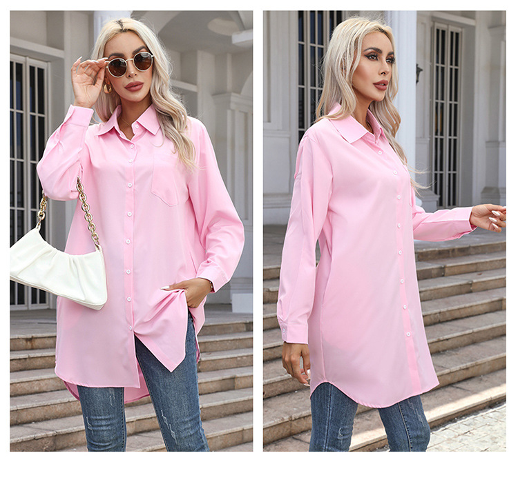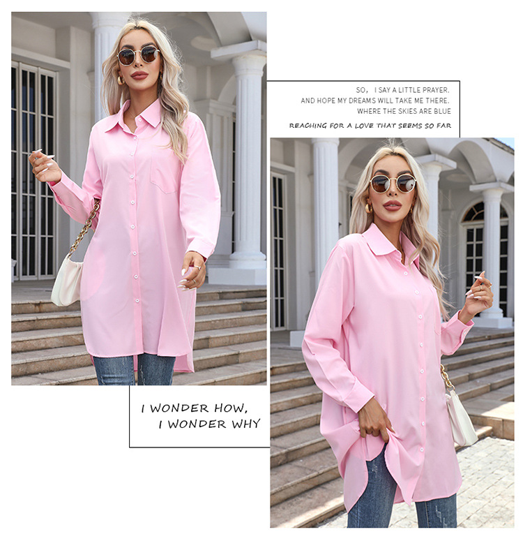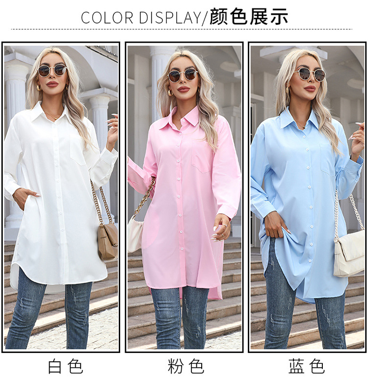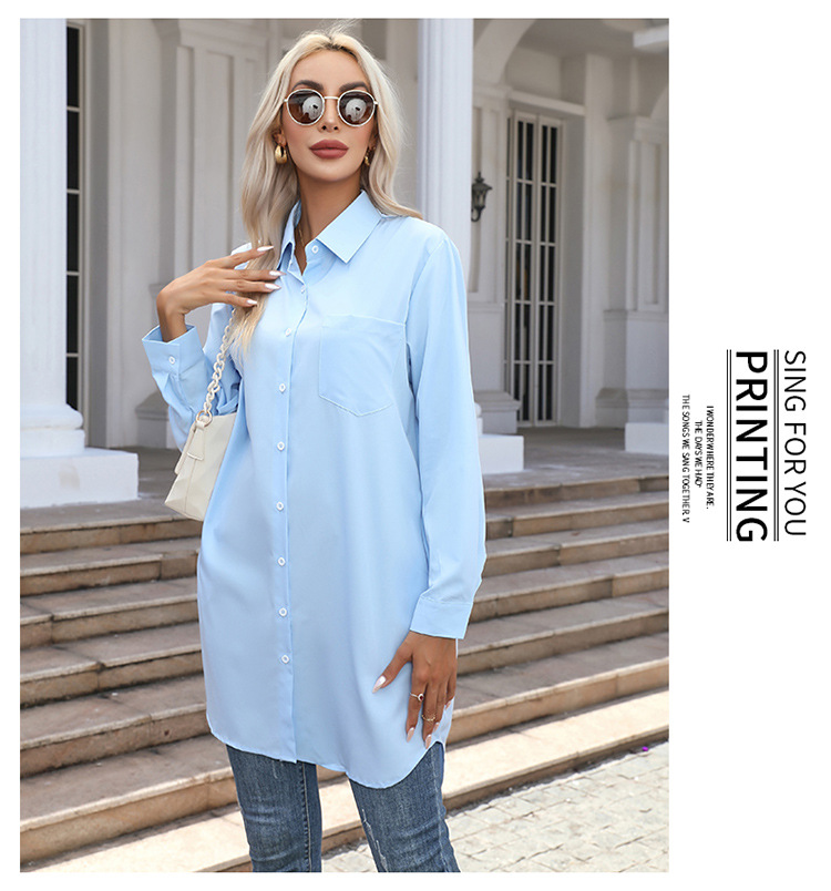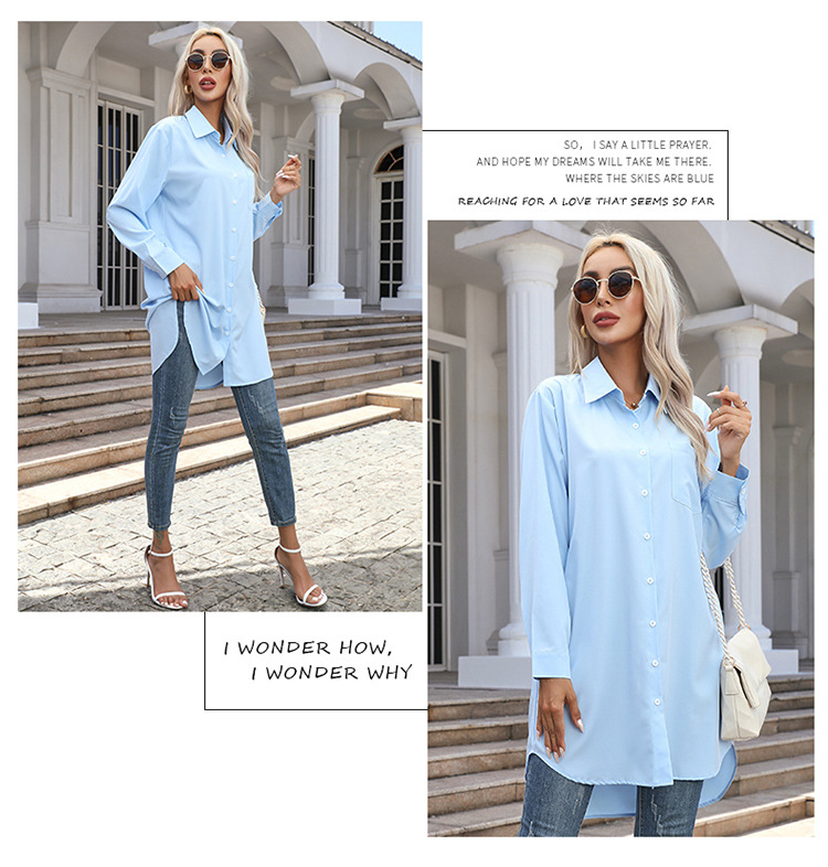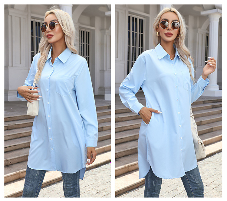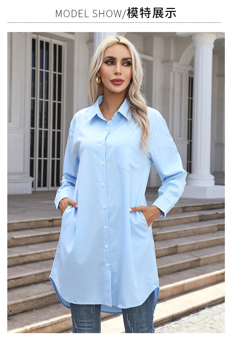 2025 국경 간 유럽과 미국 대외 무역 여성 가을 의류 새로운 스타일 아마존 긴 단색 캐주얼 기질 긴팔 셔츠 여성스토어 가기