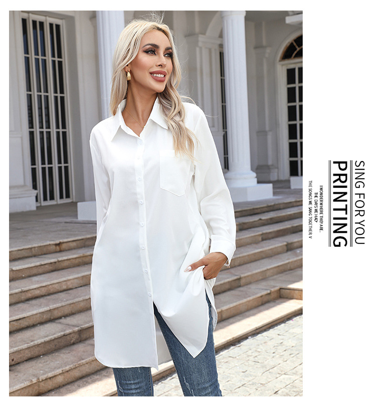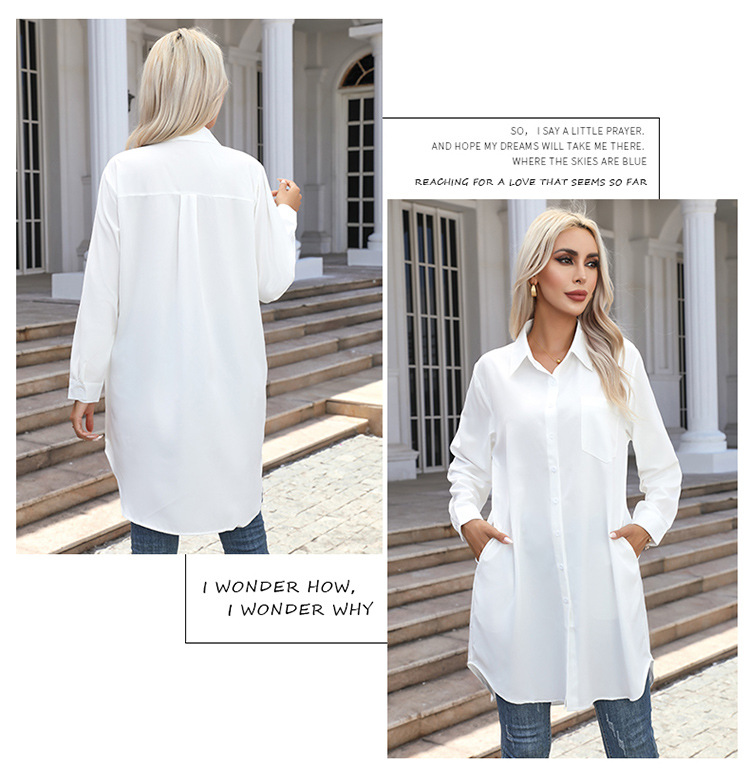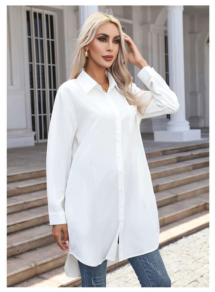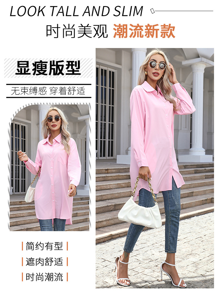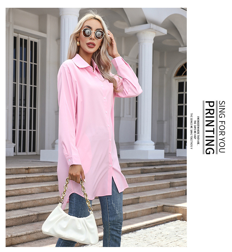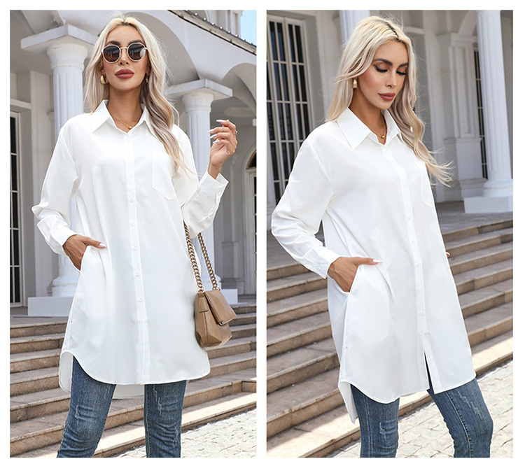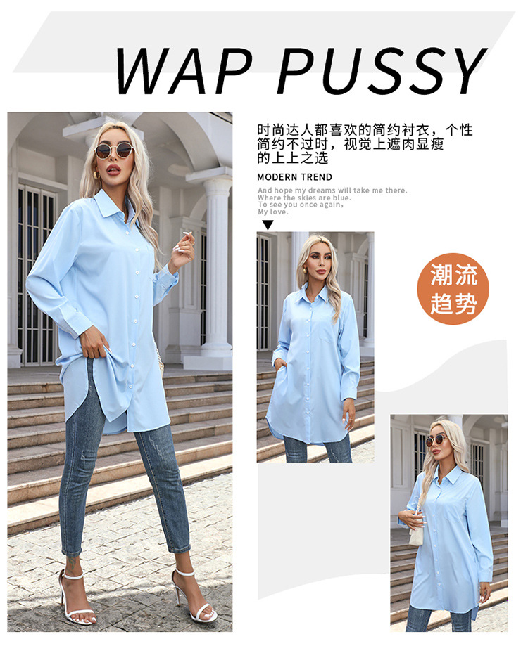 2025 국경 간 유럽과 미국 대외 무역 여성 가을 의류 새로운 스타일 아마존 긴 단색 캐주얼 기질 긴팔 셔츠 여성스토어 가기