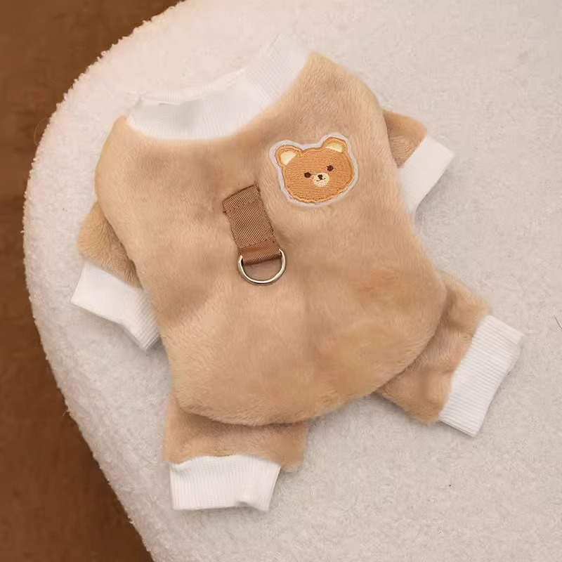 가을과 겨울 개 곰 사첼 견인 4 발 배낭 벨벳 중소 개 고양이 애완 동물 테디 개 옷