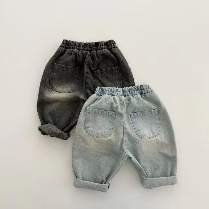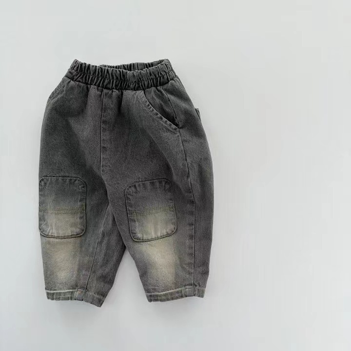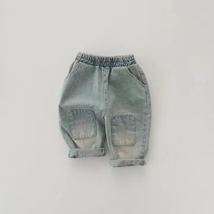한국 스타일 인스 타 그램 스타일 봄과 가을 무릎 패치 청바지 바지 탄성 캐주얼 바지 그라데이션 색상 변경 모든 매치 사진 외출스토어 가기
