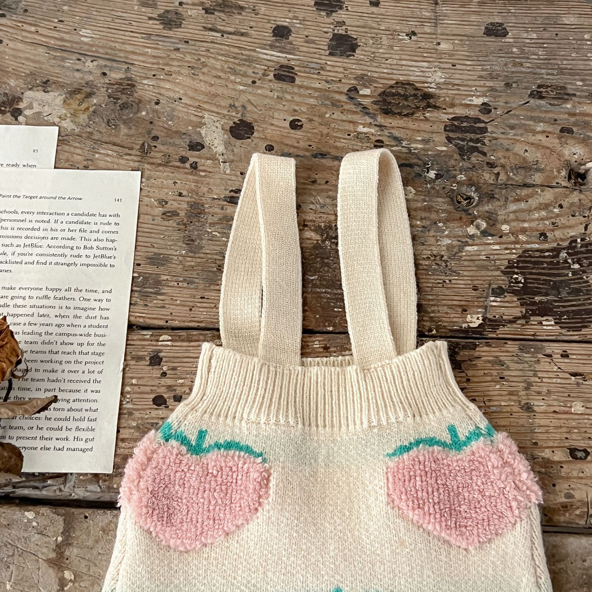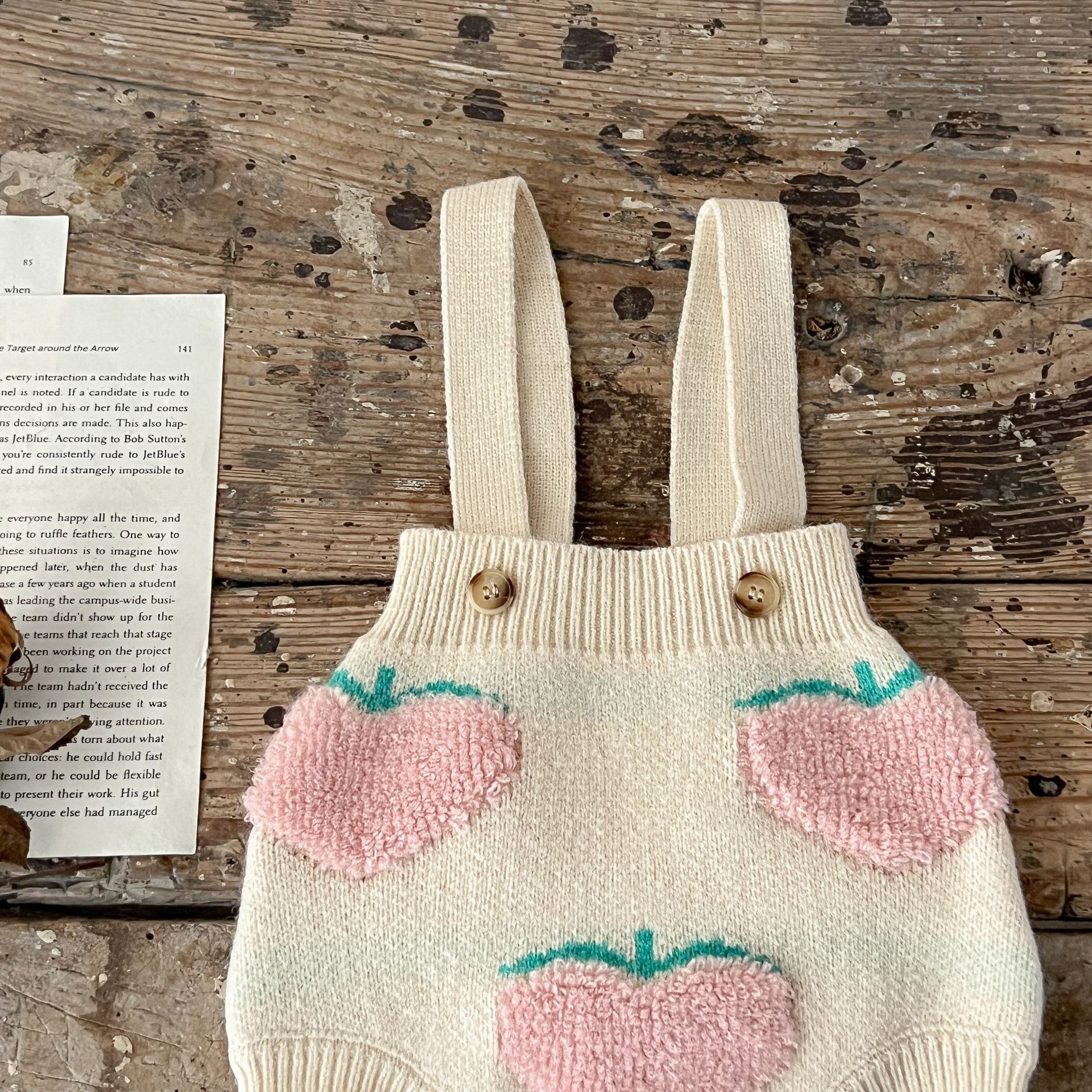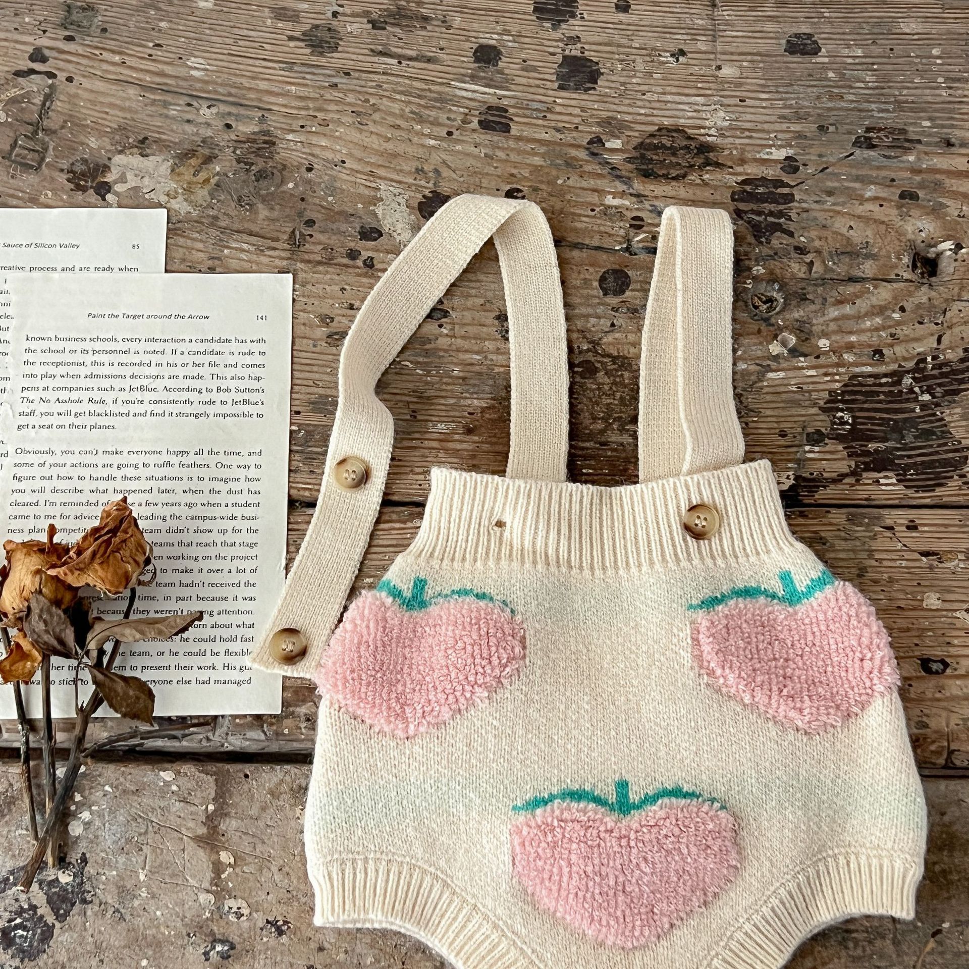 남성과 여성의 아기 스웨터 가을과 겨울 투피스 코튼 복숭아 자수 카디건 + 멜빵 세트 한국어 버전