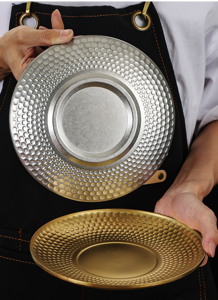 304 한국식 바베큐 플레이트 스테인레스 스틸 디스크 해머 플레이트 창조적 인 디저트 플레이트 간단한 야외 캠핑 식기 상업