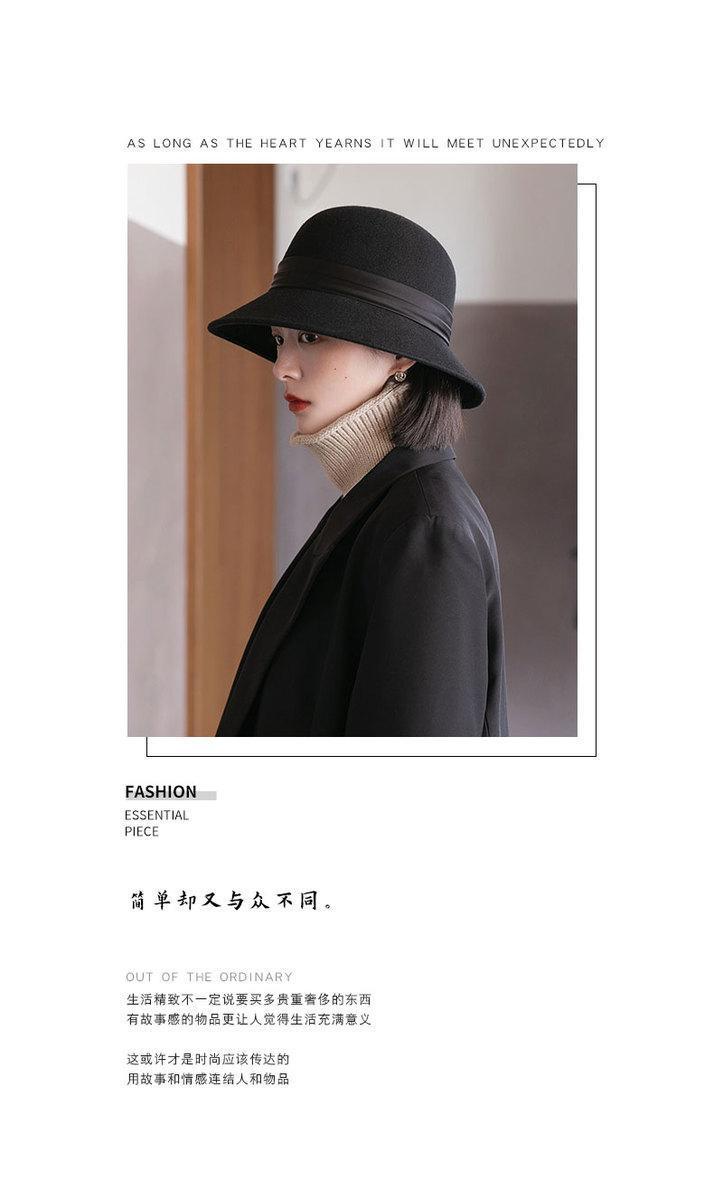 펠트 모자 여성의 가을과 겨울 울 새로운 검은 탑 모자 빈티지 패션 모든 매치 어부 모자 모직 분지 모자 여성의 겨울스토어 가기