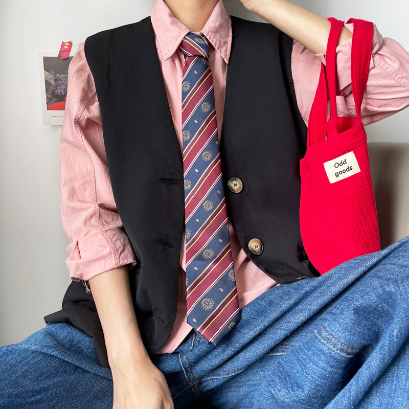 네이비 빨간 줄무늬 배지 넥타이 dk 일본식 남자와 여자의 손을 명중 학생 대학 스타일 유니폼 셔츠 커피 장식 jk스토어 가기