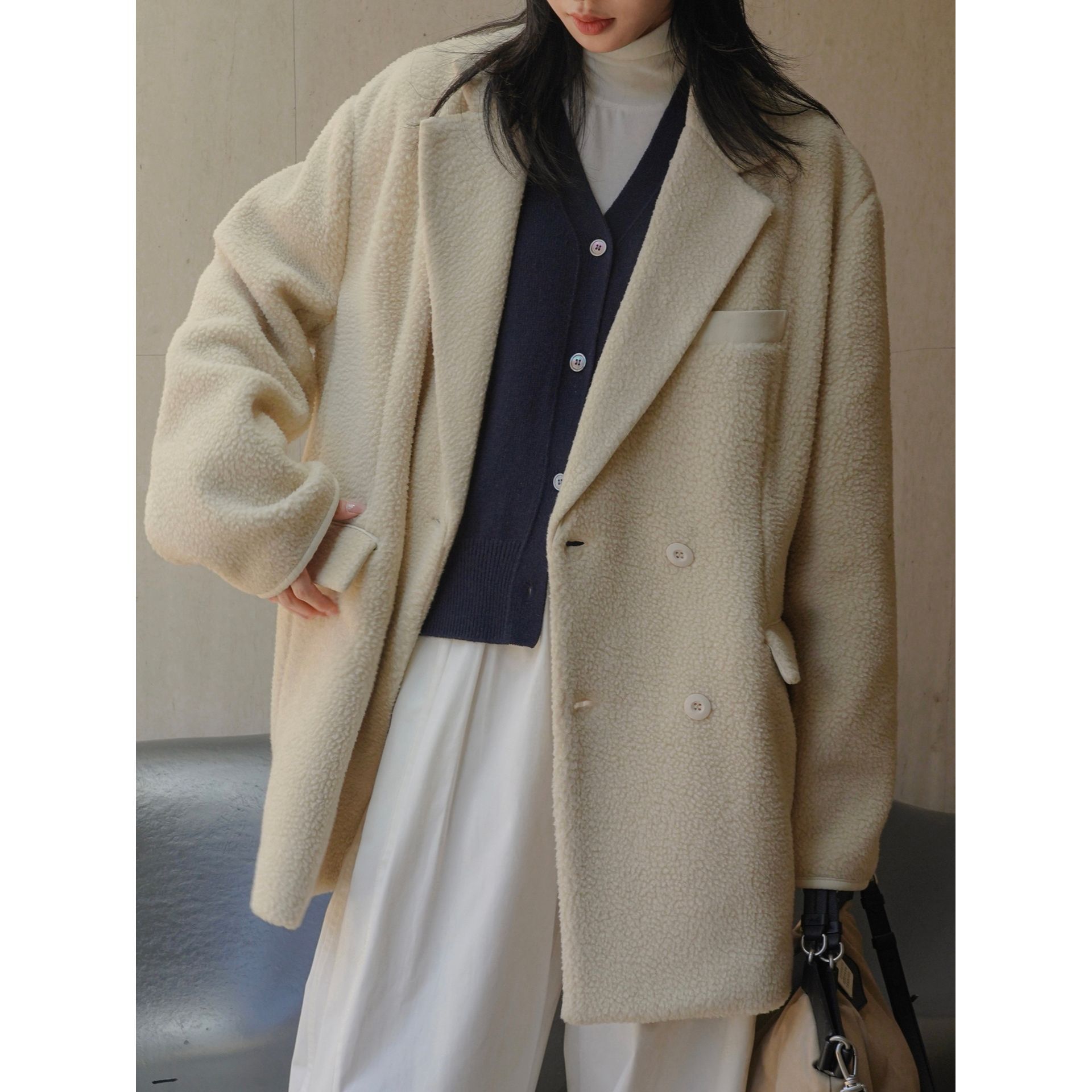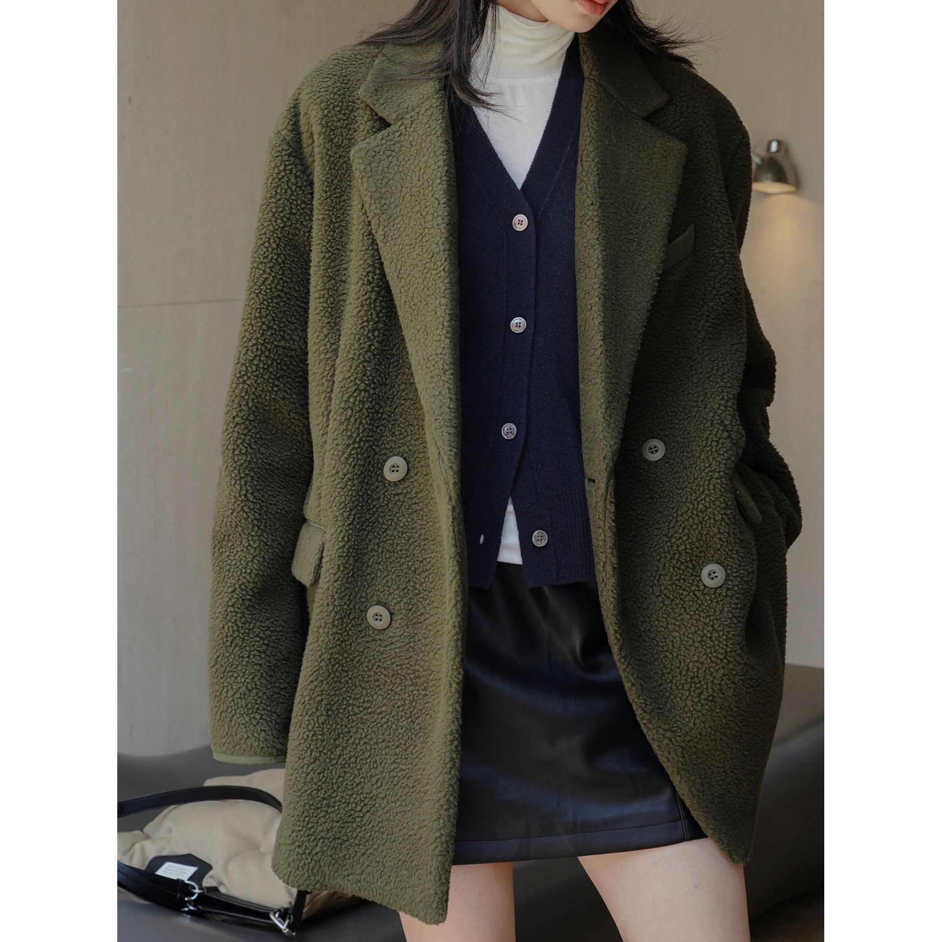 Lufu 겨울 새로운 일본 야외 캐주얼 양털 세트 느슨한 프로필 부드러운 왁스 따뜻한 재킷 여자의 두꺼운스토어 가기