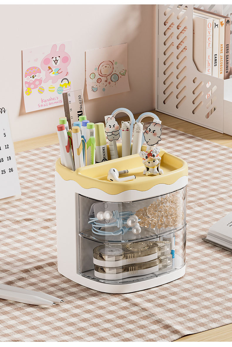 회전 다기능 펜 홀더 만화 데스크탑 보관함 크리 에이 티브 투명 작은 서랍 책상 문구 보관함스토어 가기