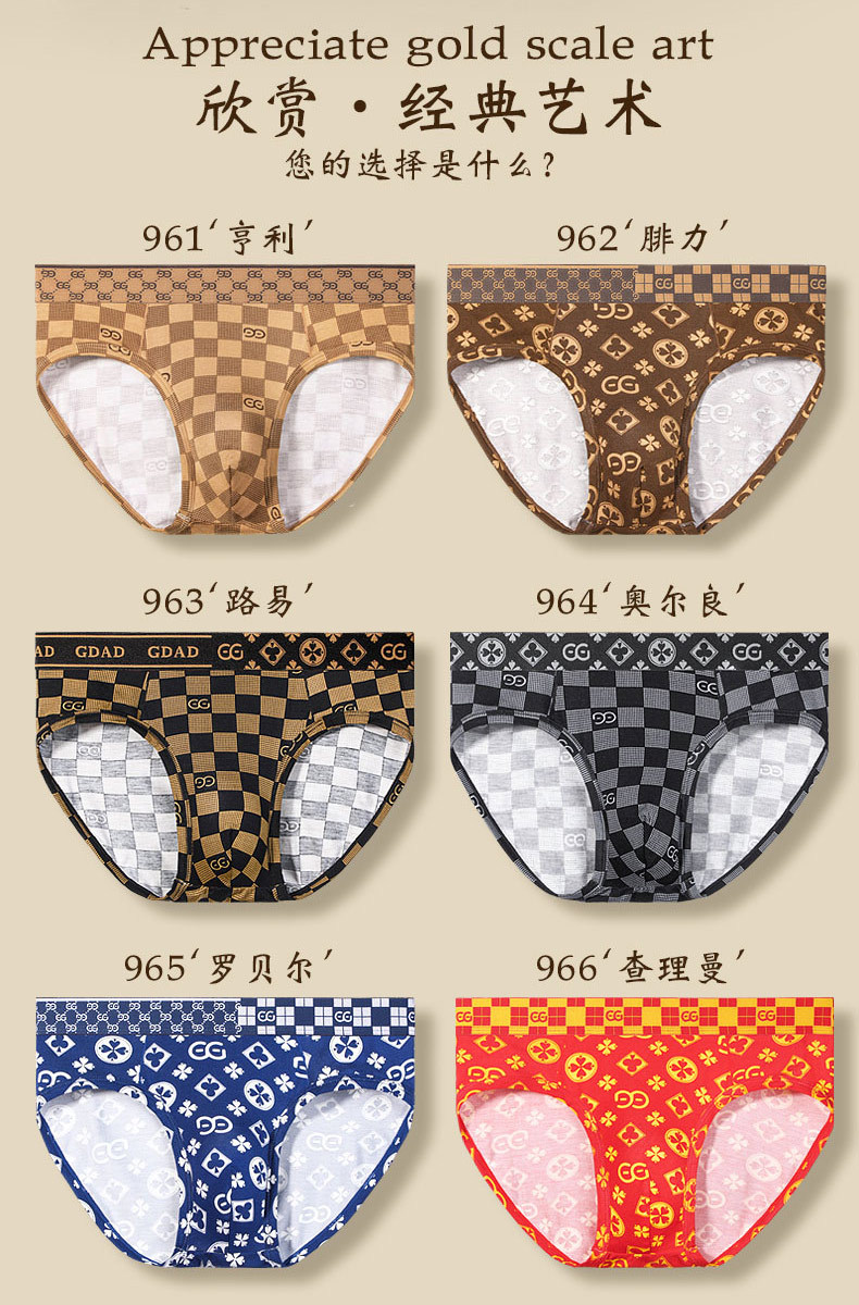 GDECC 남성 브리프 모달 부드럽고 편안한 트렌디 한 패션 개성 프린트 미드 웨이스트 팬츠