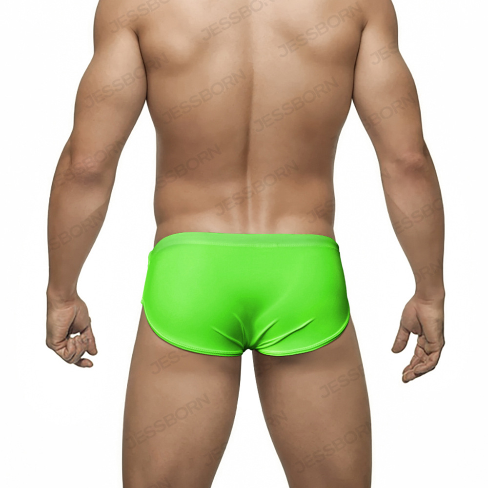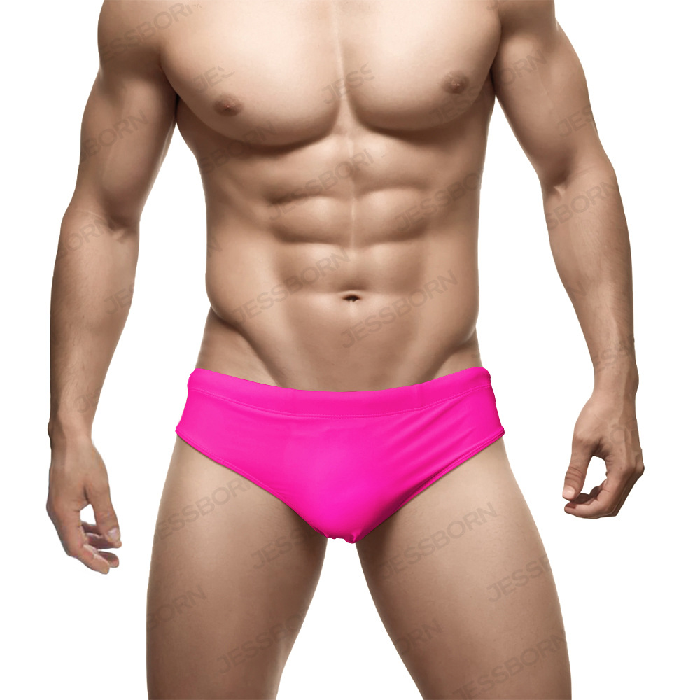JESSBORN 단색 나일론 남성용 수영 삼각형 낮은 허리 섹시한 온천 수영복 예술 테스트 무대 성능 반바지스토어 가기