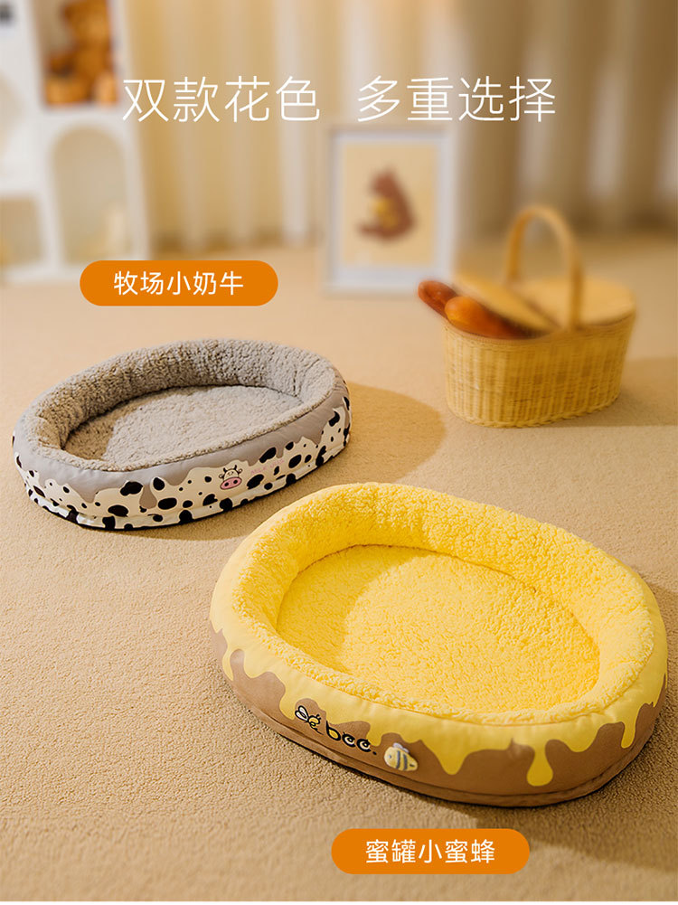 귀여운 작은 꿀벌 사육장 사계절 유니버설 분리 및 빨 타원형 수면 매트 겨울 따뜻한 고양이 둥지 중형 및 소형 개 침대