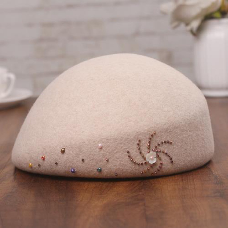 모자 여자의 가을과 겨울 양모 베레모 영국 빈티지 스튜어디스 모자 우아한 패션 라인 석 장식 울 탑 모자