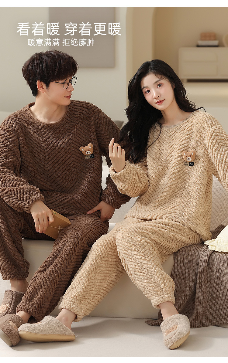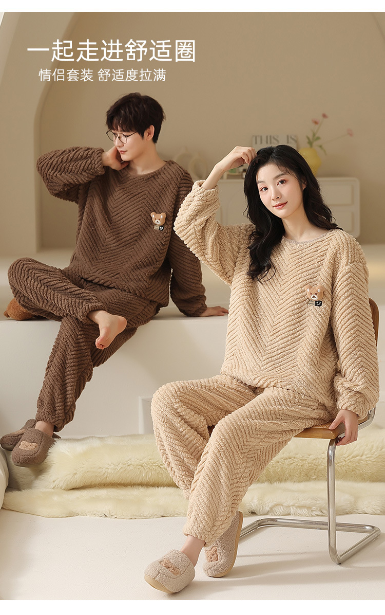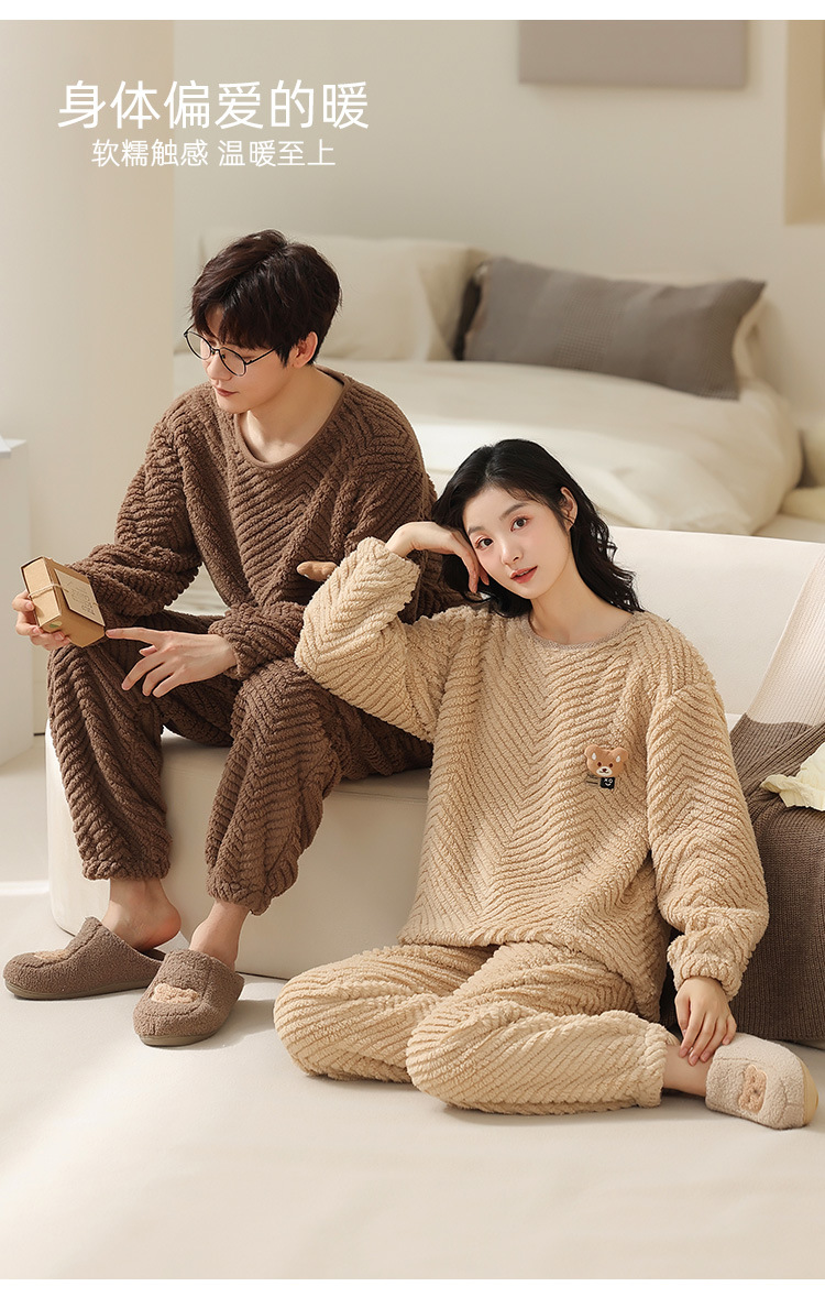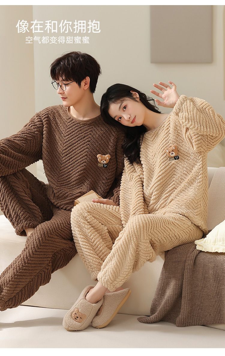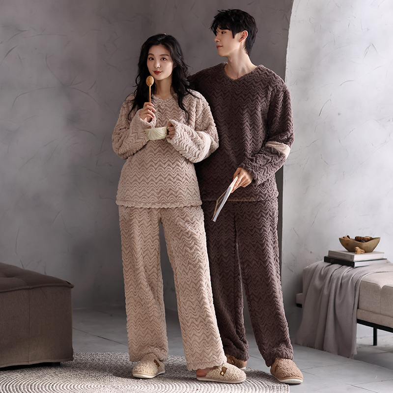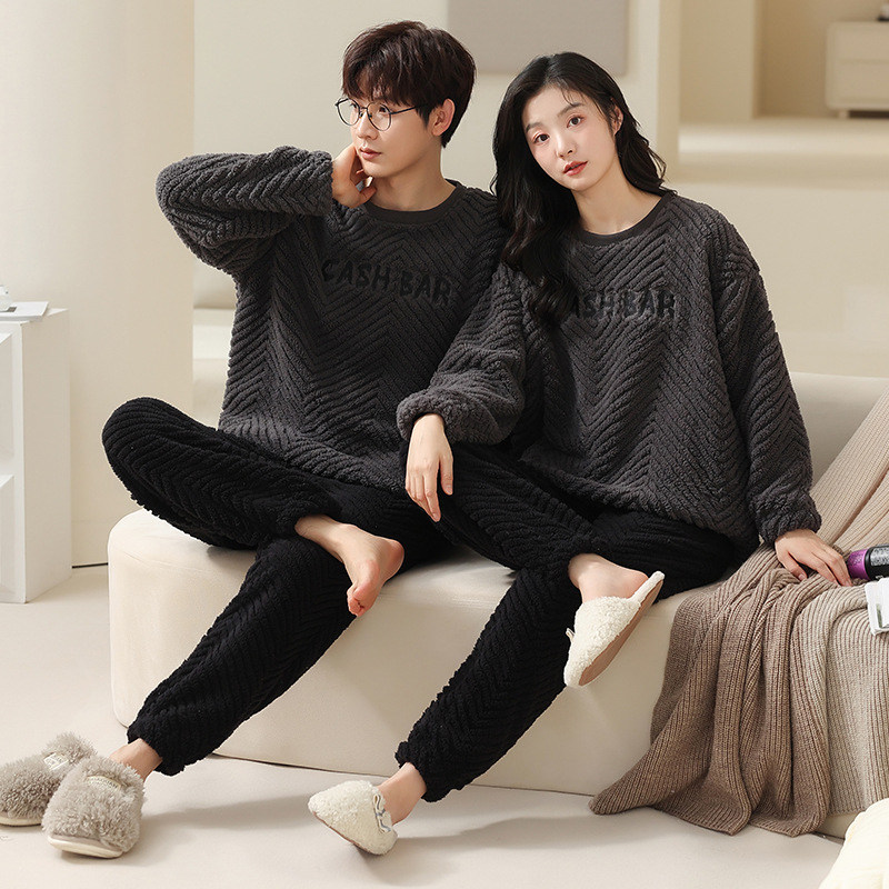 겨울 플란넬 커플 잠옷 겨울 풀오버 긴 소매 바지 세트 남성과 여성을위한 따뜻한 잠옷을 입고스토어 가기