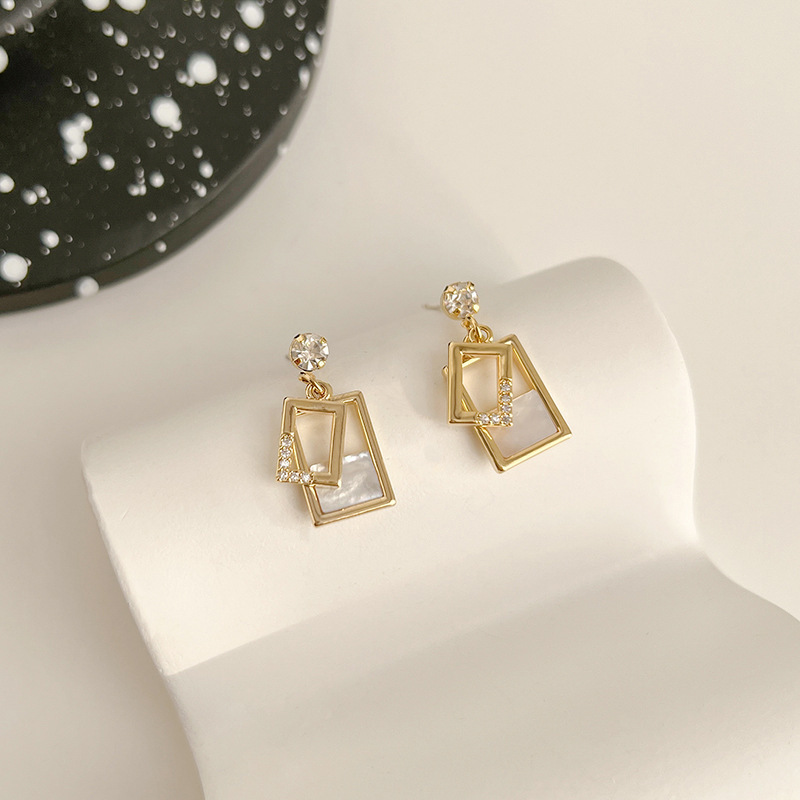 S925 실버 바늘 기질 기하학적 사각 짧은 귀걸이 틈새 고급 귀걸이 여성용 인터넷 연예인 만능 귀걸이스토어 가기