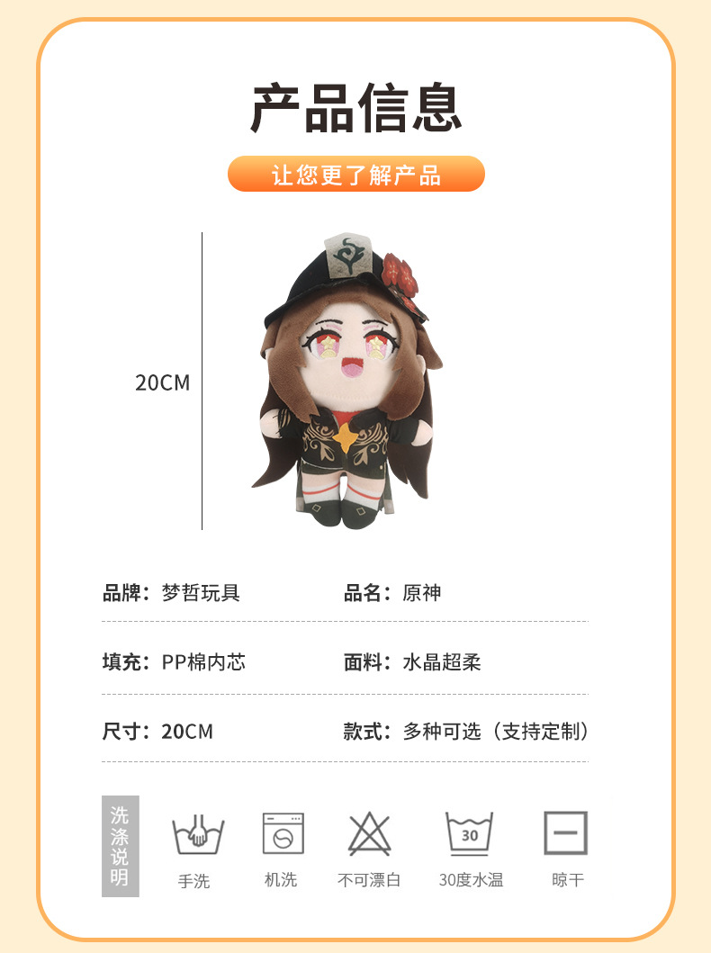 원래 신 게임 봉제 장난감 인형 Zhong Li Hu Tao Ke 리 웬디 구로 봉제 인형 그랩 기계 인형스토어 가기