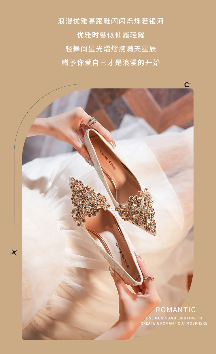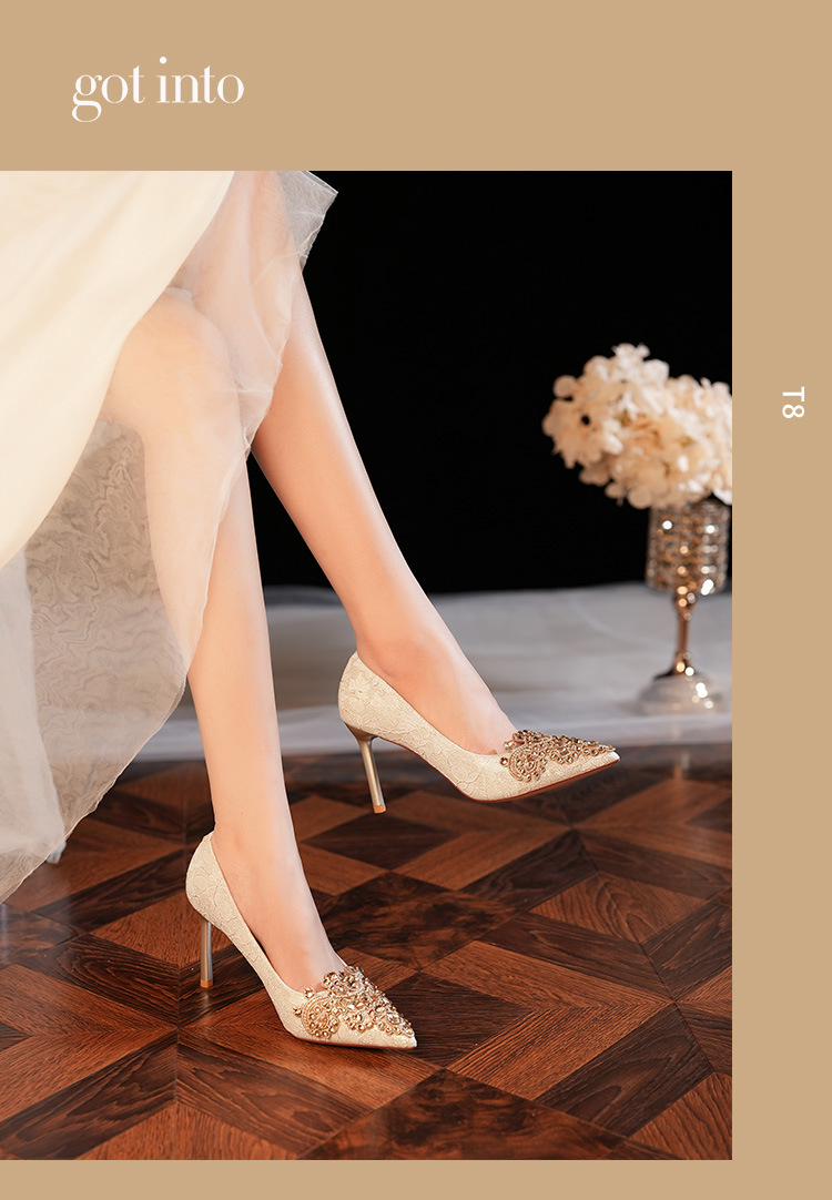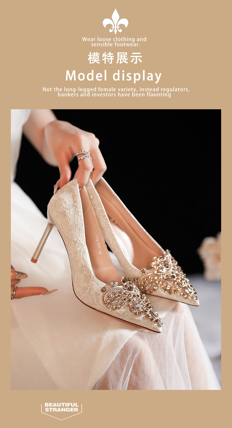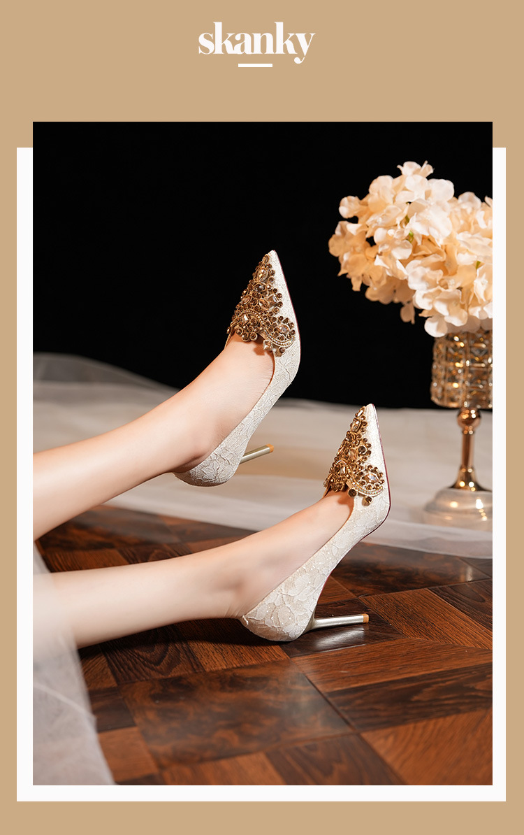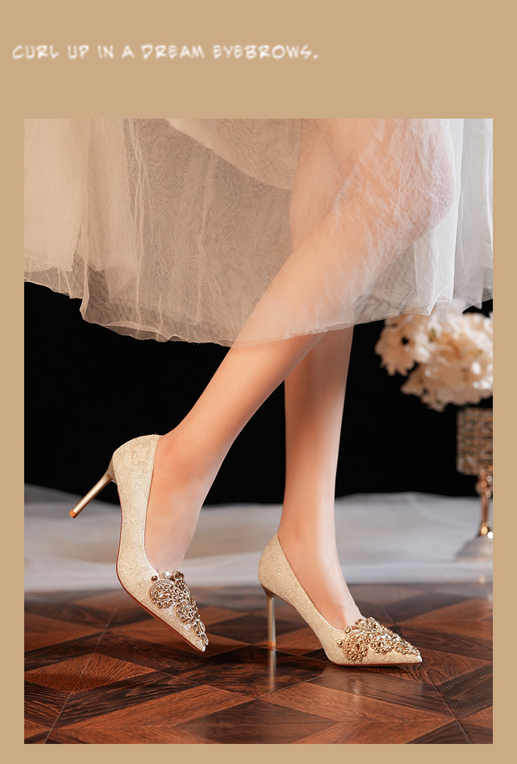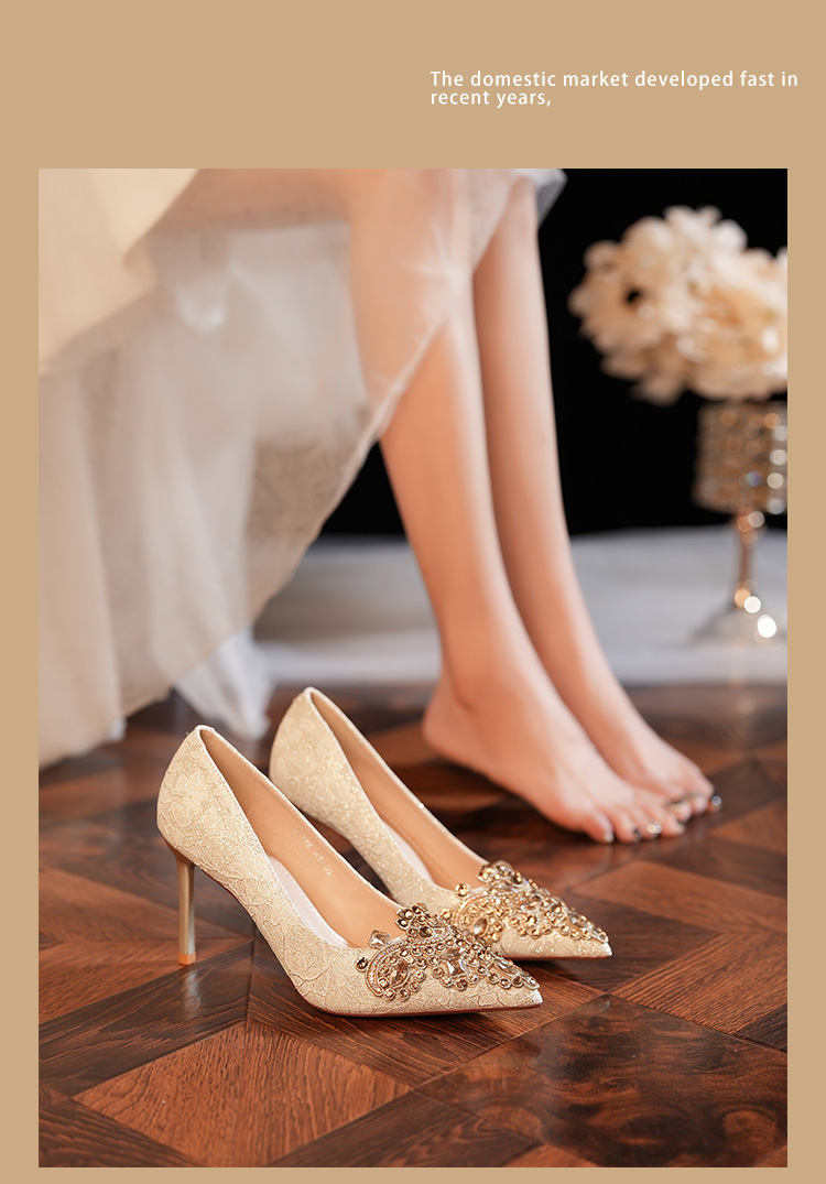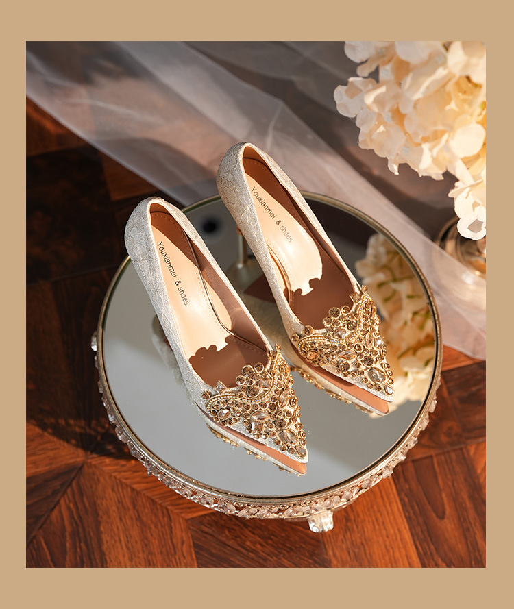 8777E-007 뾰족한 앞코의 라인스톤 장식, 실크 새틴, 금색 테두리, 하이힐, 웨딩, 연회, 신부, 신부 들러리 구두, 빨간색, 축제용스토어 가기